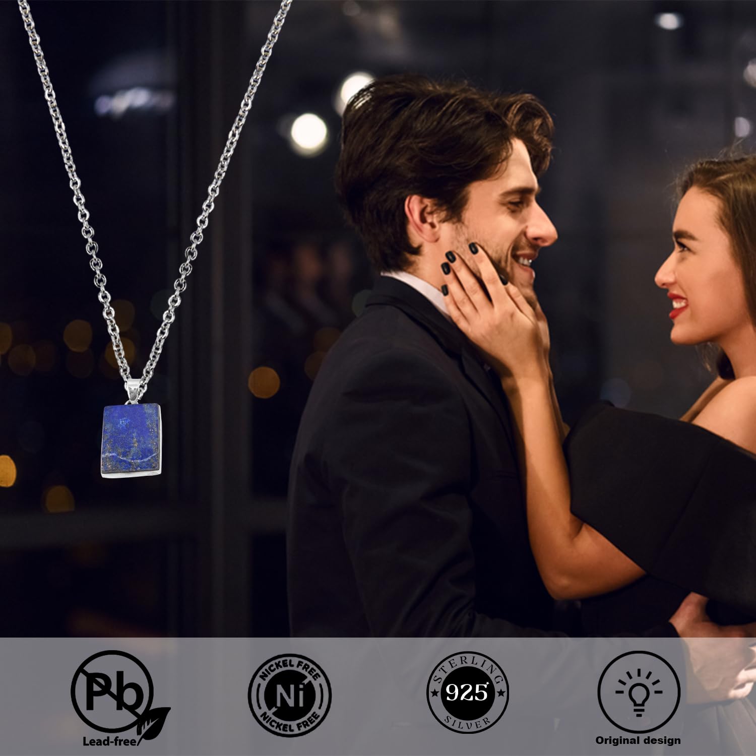 Natural Lapis Lazuli Pendant, 925 Sterling Silver Gemstone Pendant