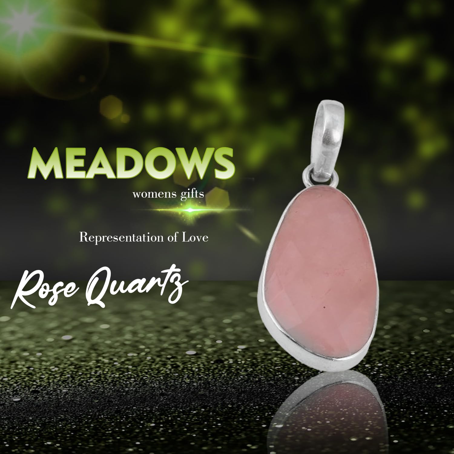 Natural Pink Rose Quartz Pendant 925 Sterling Silver Handmade Gemstone Pendant mothers day gifts