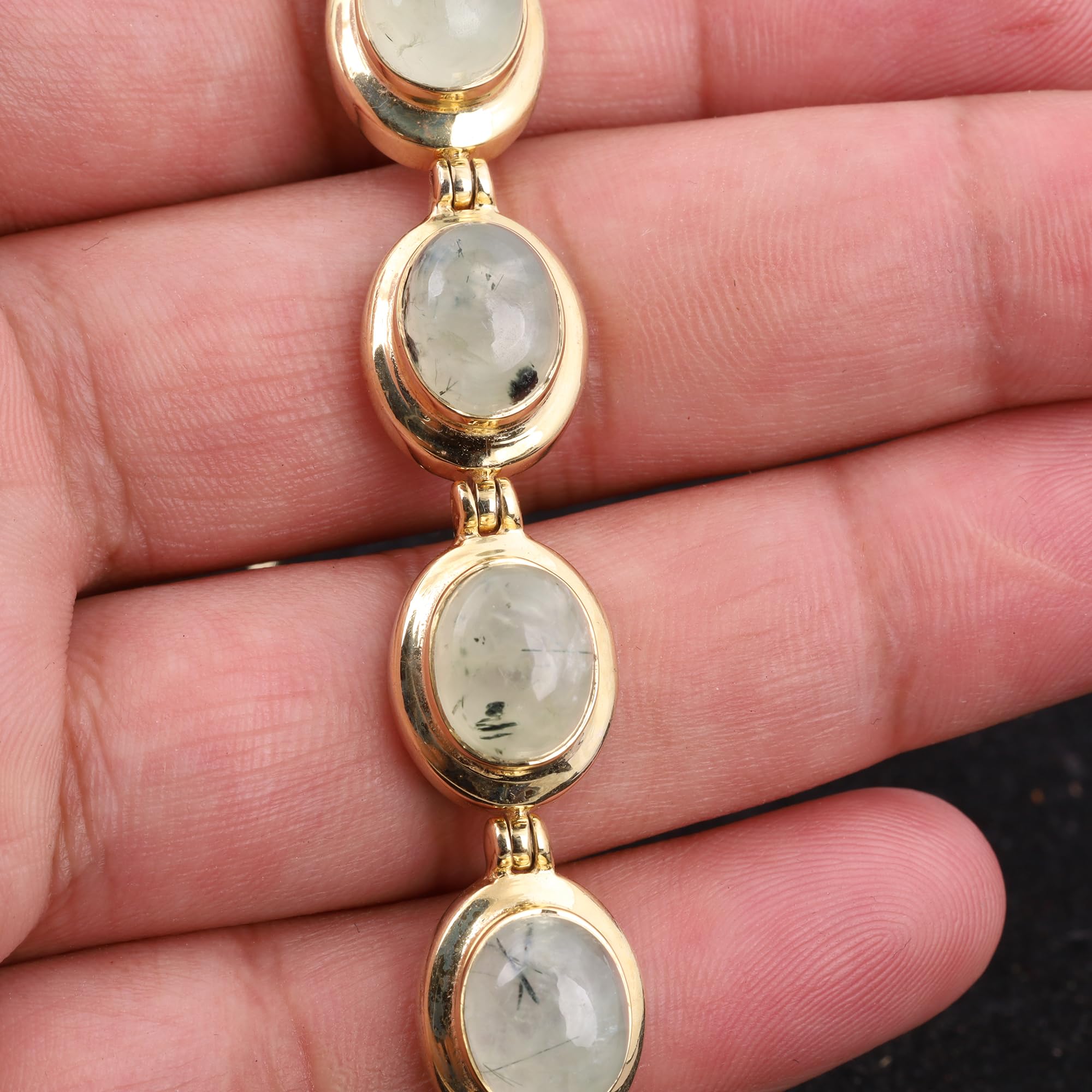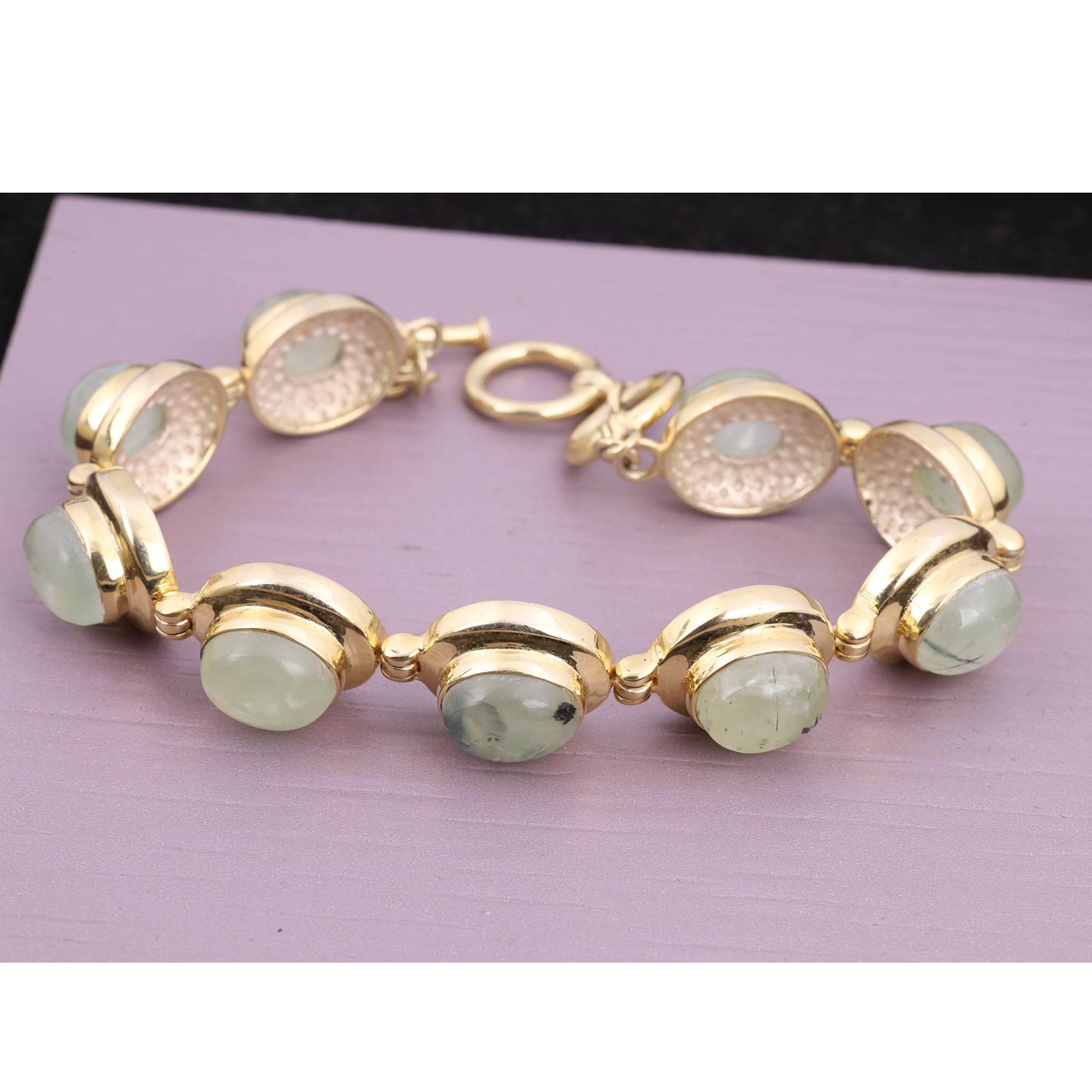 Natural Prehnite Bracelet Yellow Gold Overlay Bracelet Handmade Link Bracelet Jewelry mothers day gifts