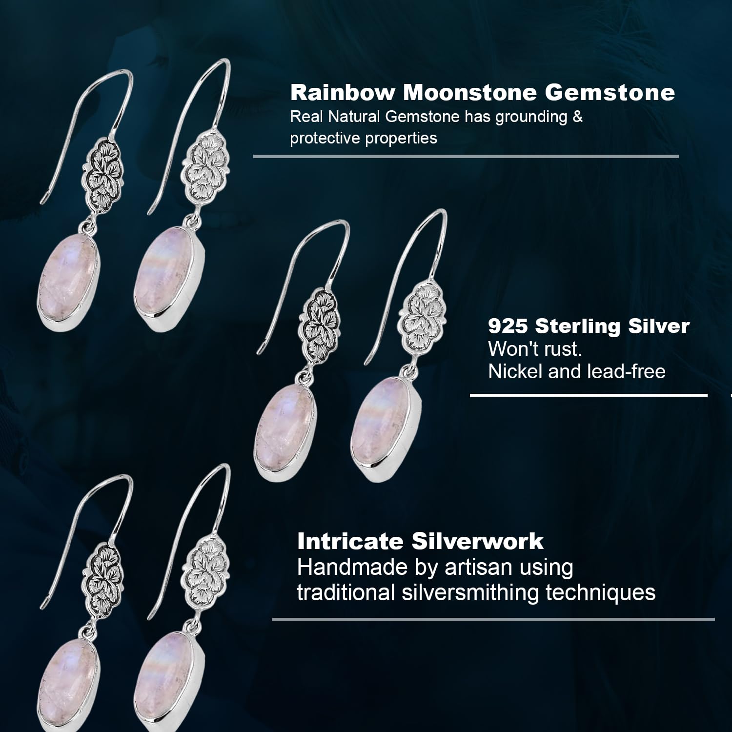 Natural Rainbow Moonstone Earring, 925 Sterling Silver Earring, Bohemian Earrings mothers day gifts