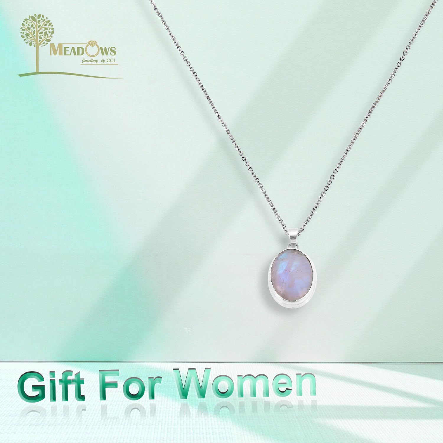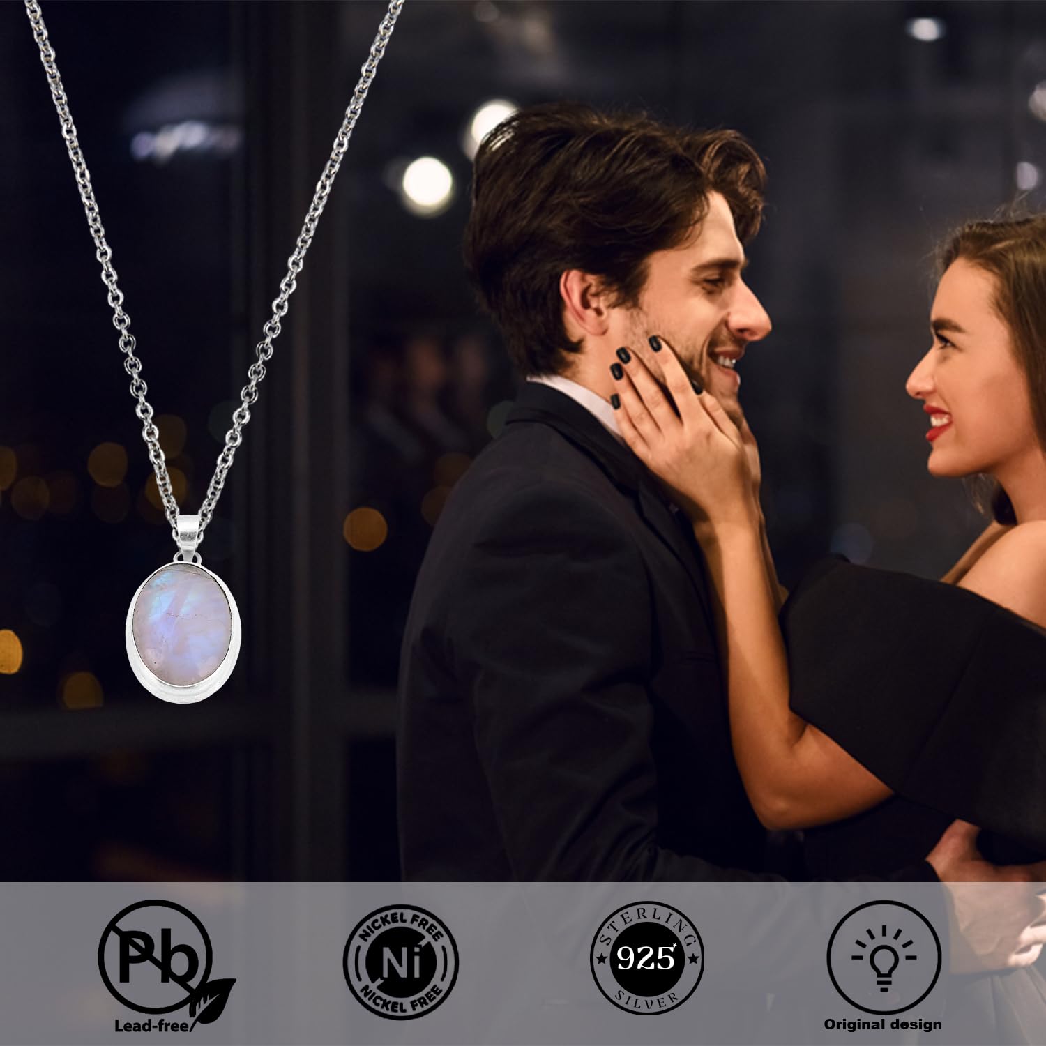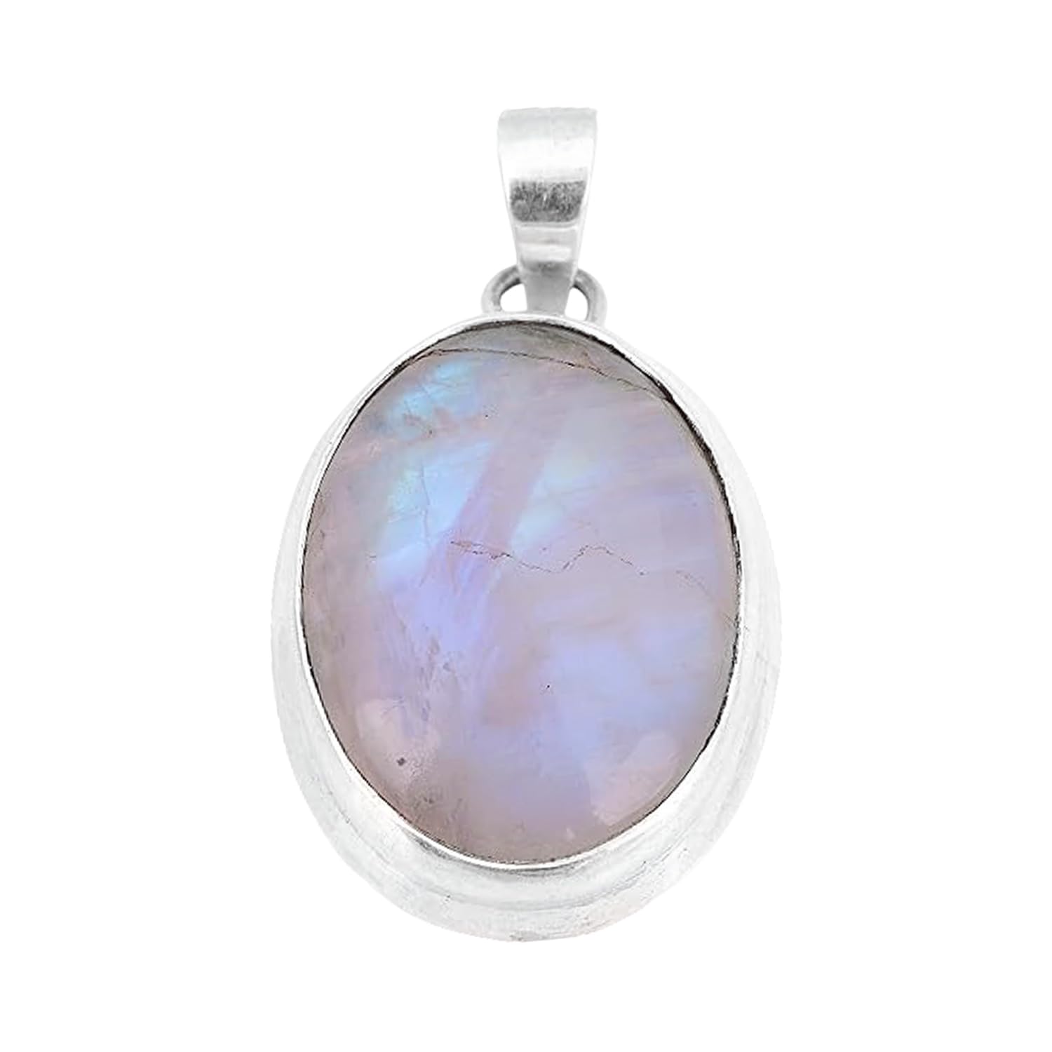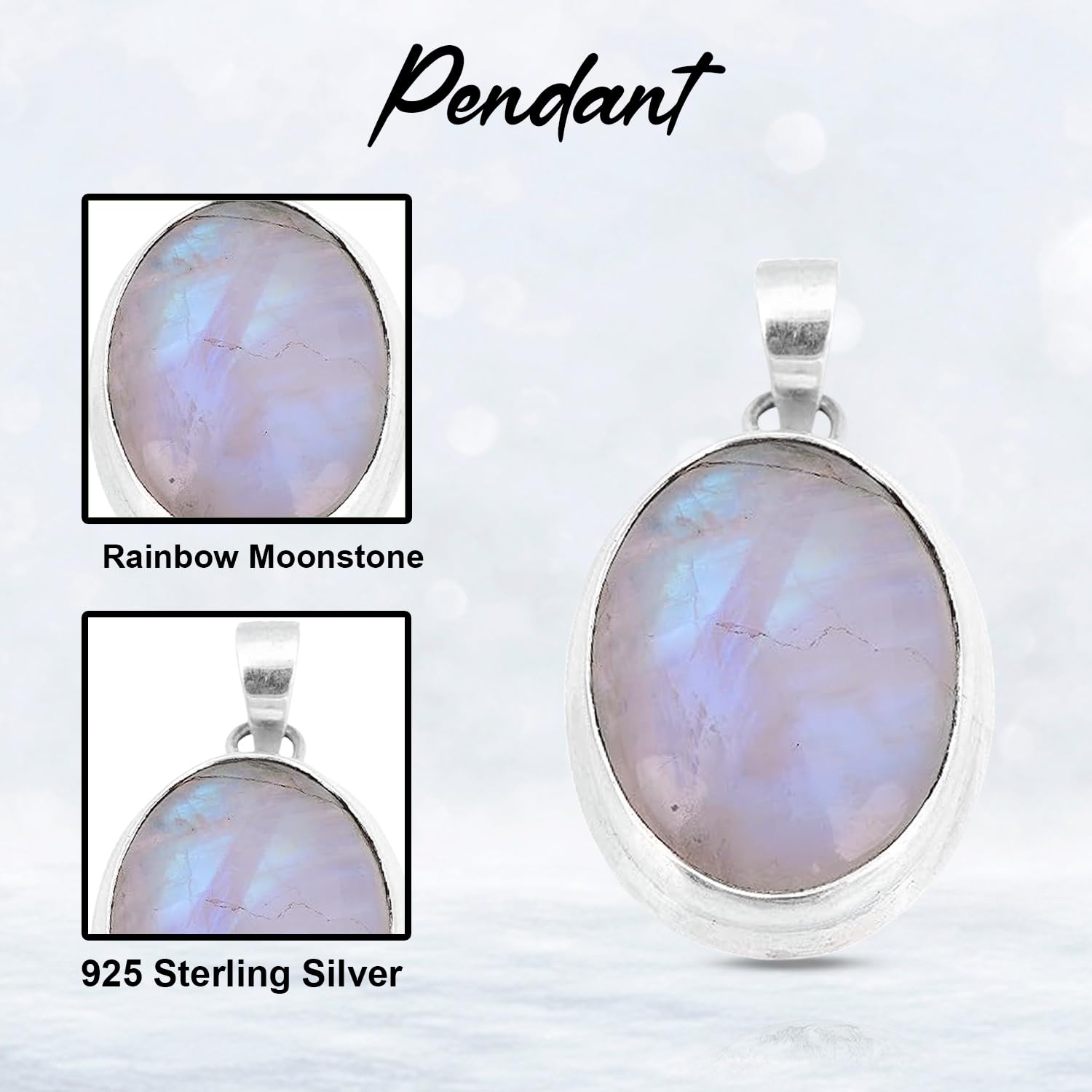 Natural Rainbow Moonstone Pendant, Oval Shape Gemstone 925 Sterling Silver Pendant Jewellery
