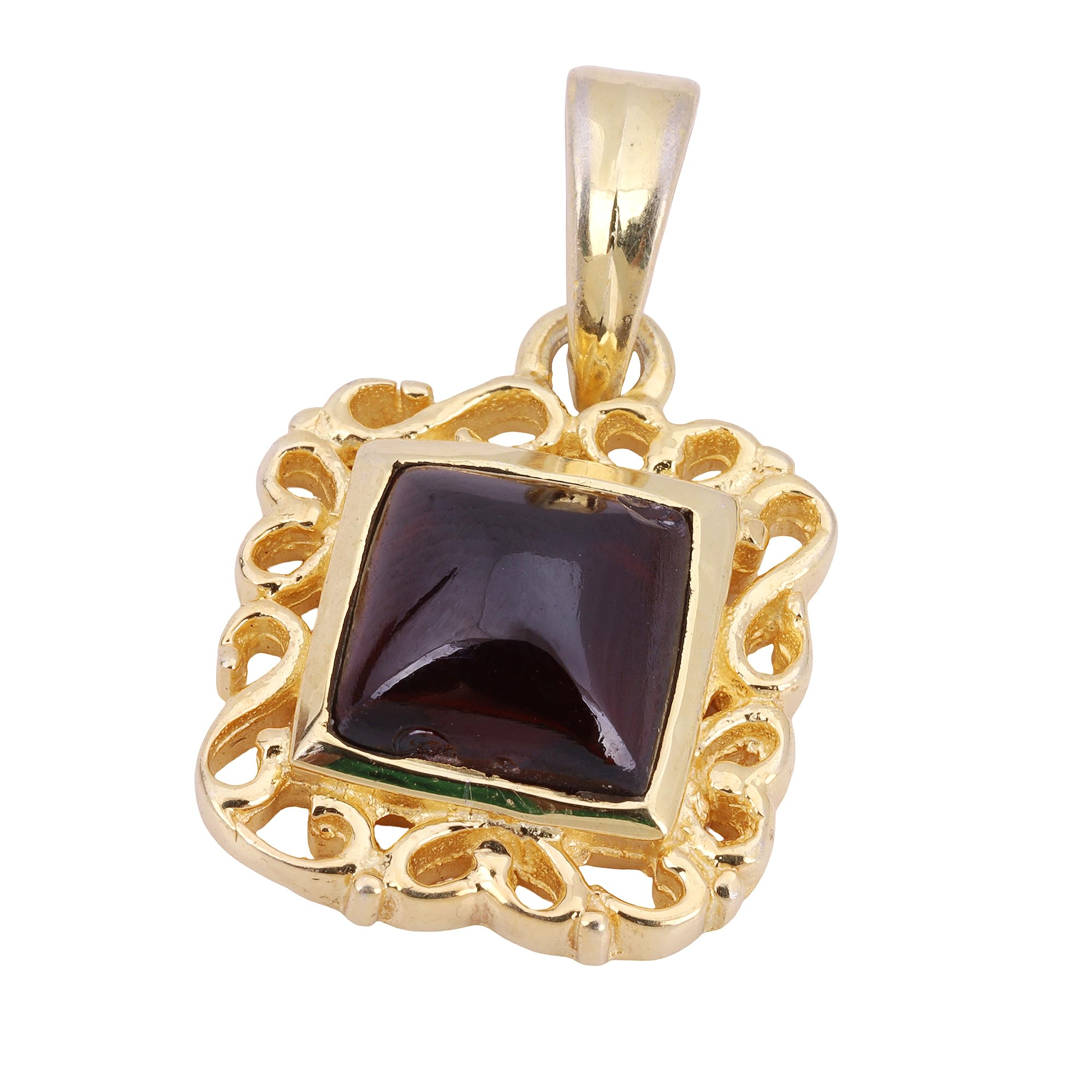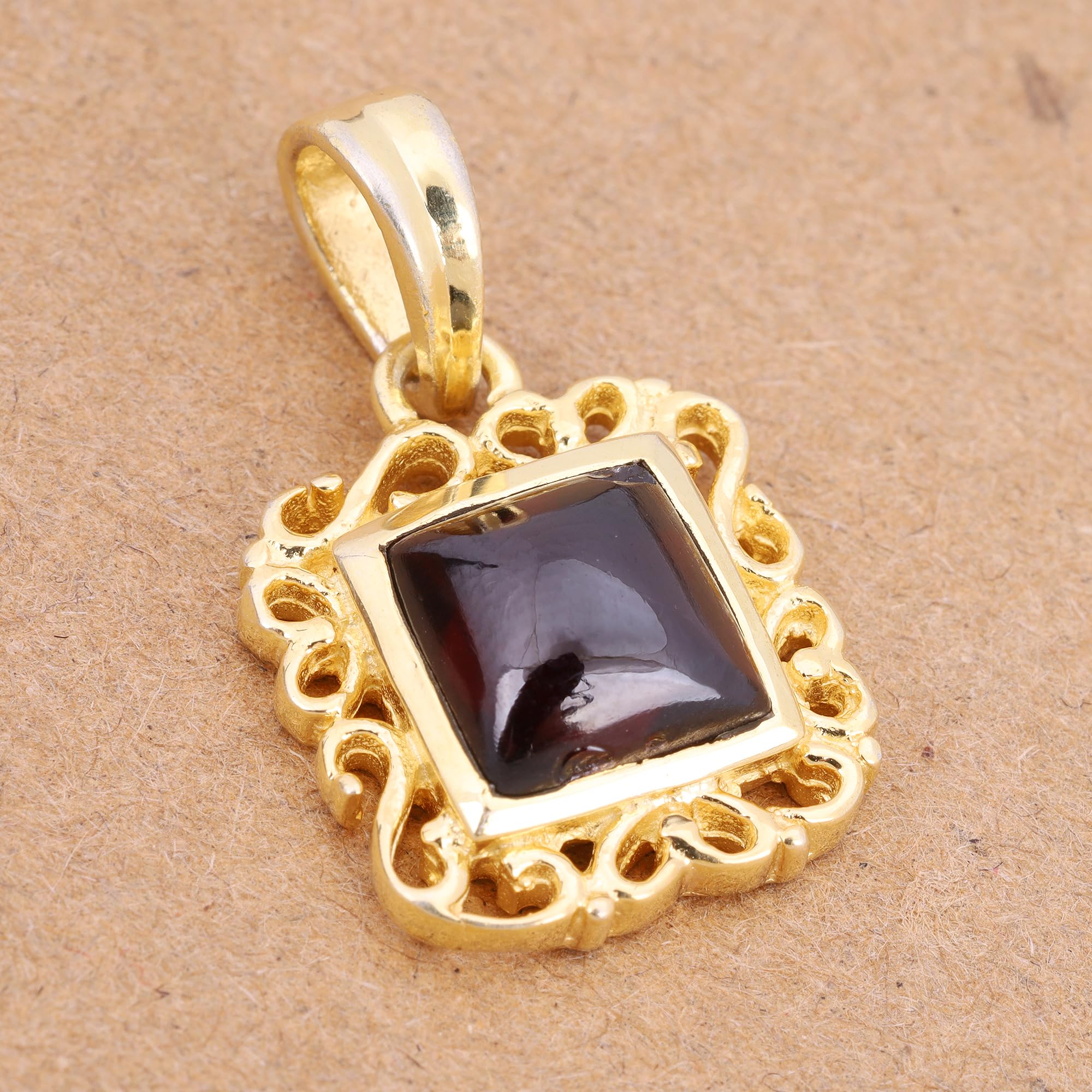 Natural Red Garnet Pendant, Yellow Gold Plated 925 Sterling Silver Pendant