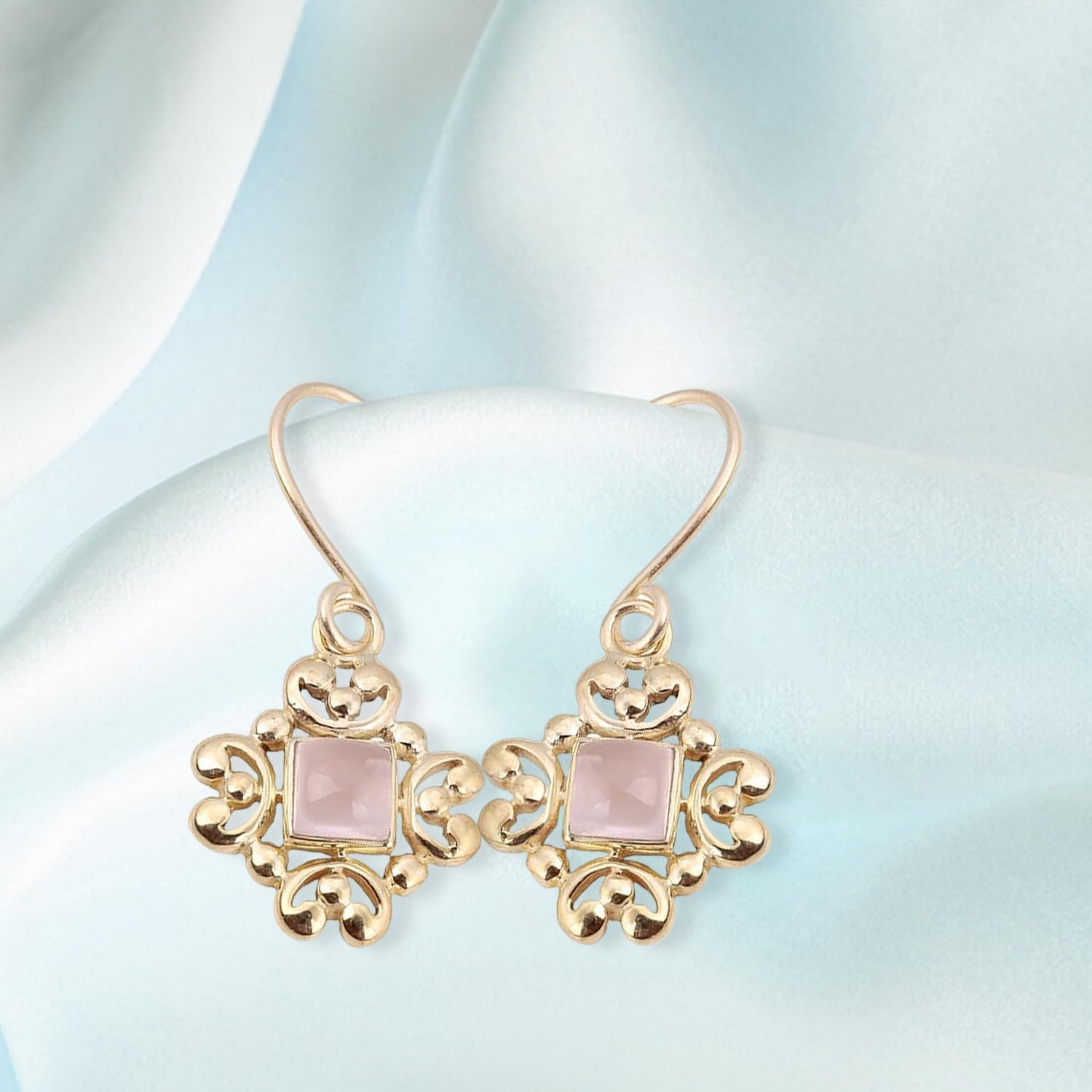 Natural Rose Quartz Earring Designer Fashion Earring Yellow Gold Brass Earring Bohemian Earring mothers day gifts