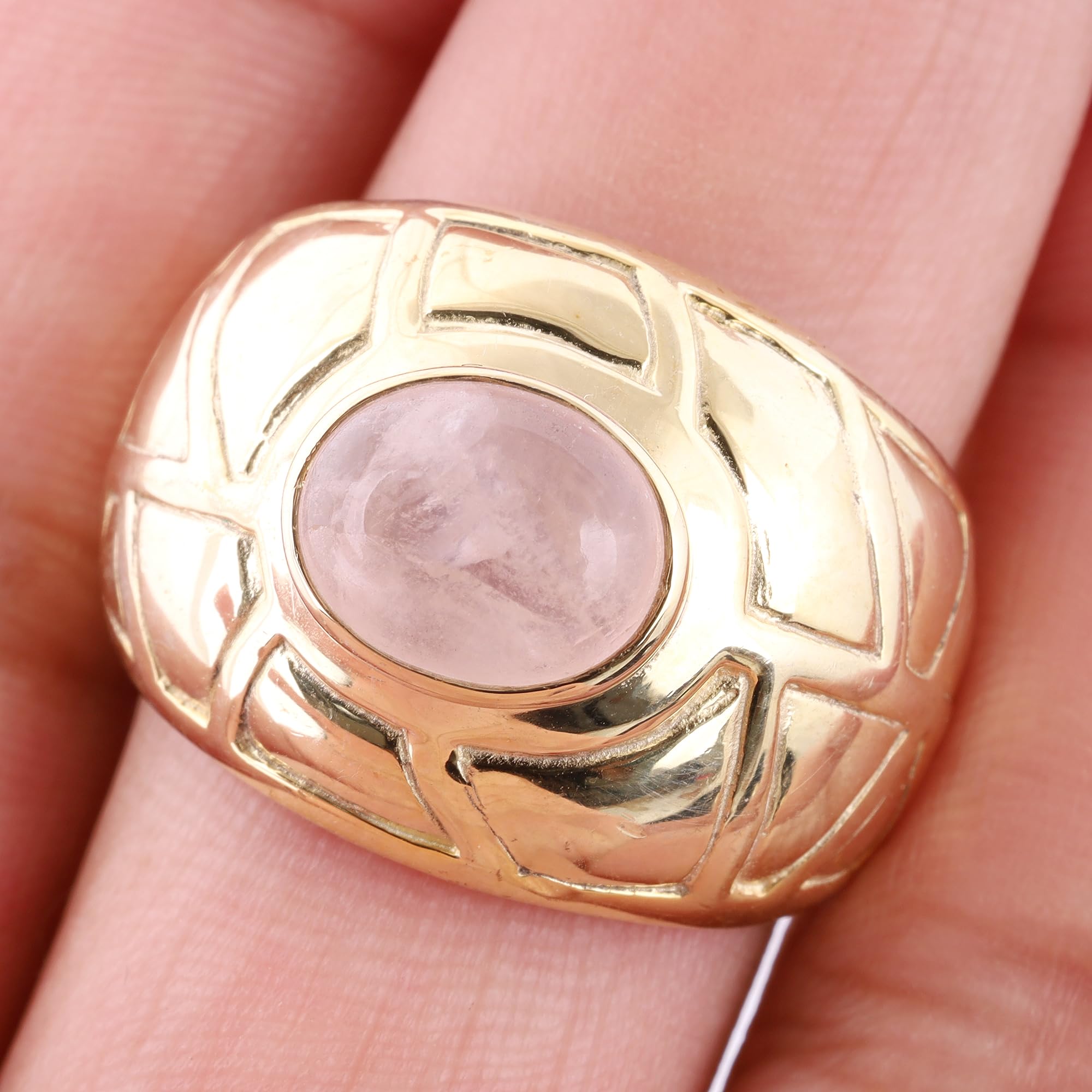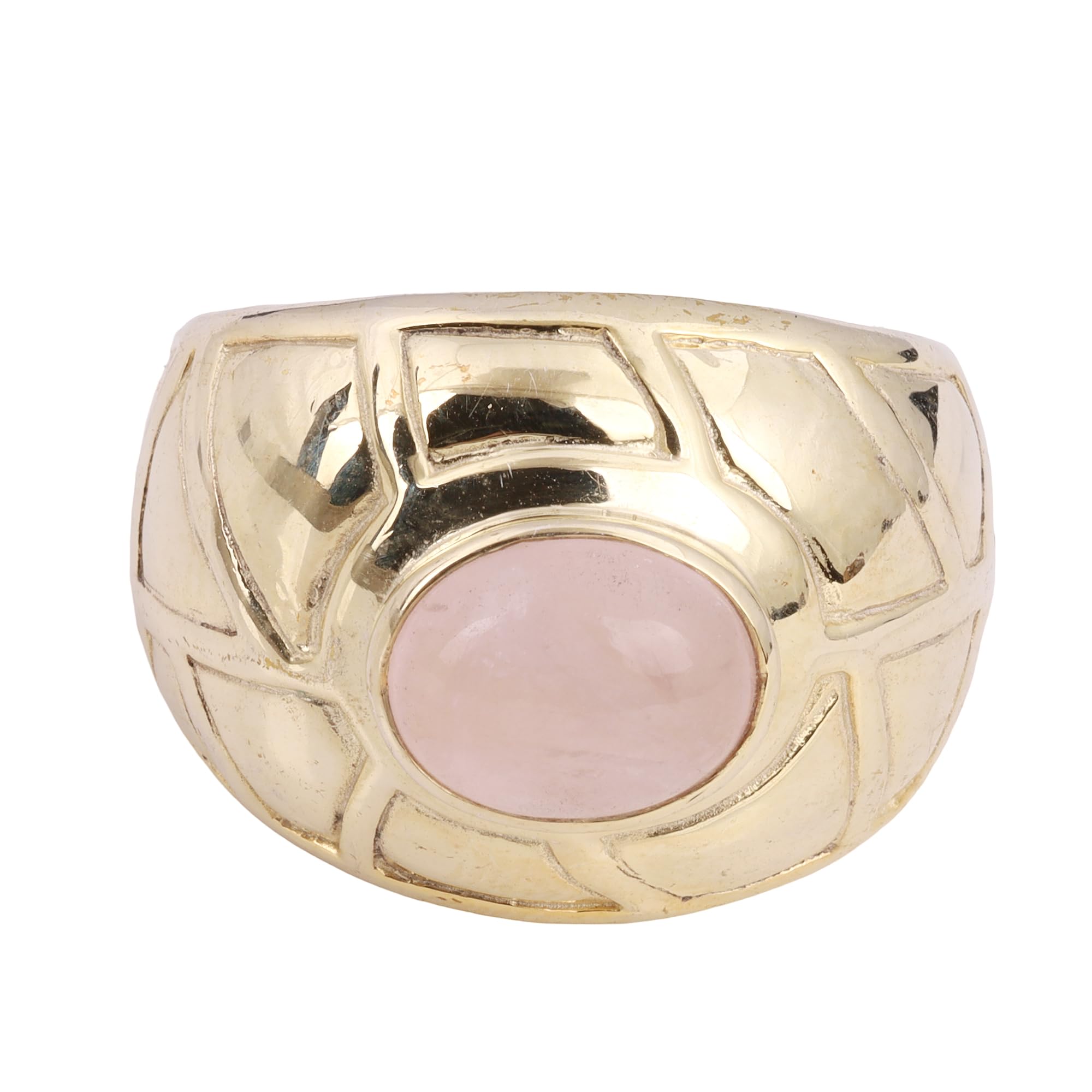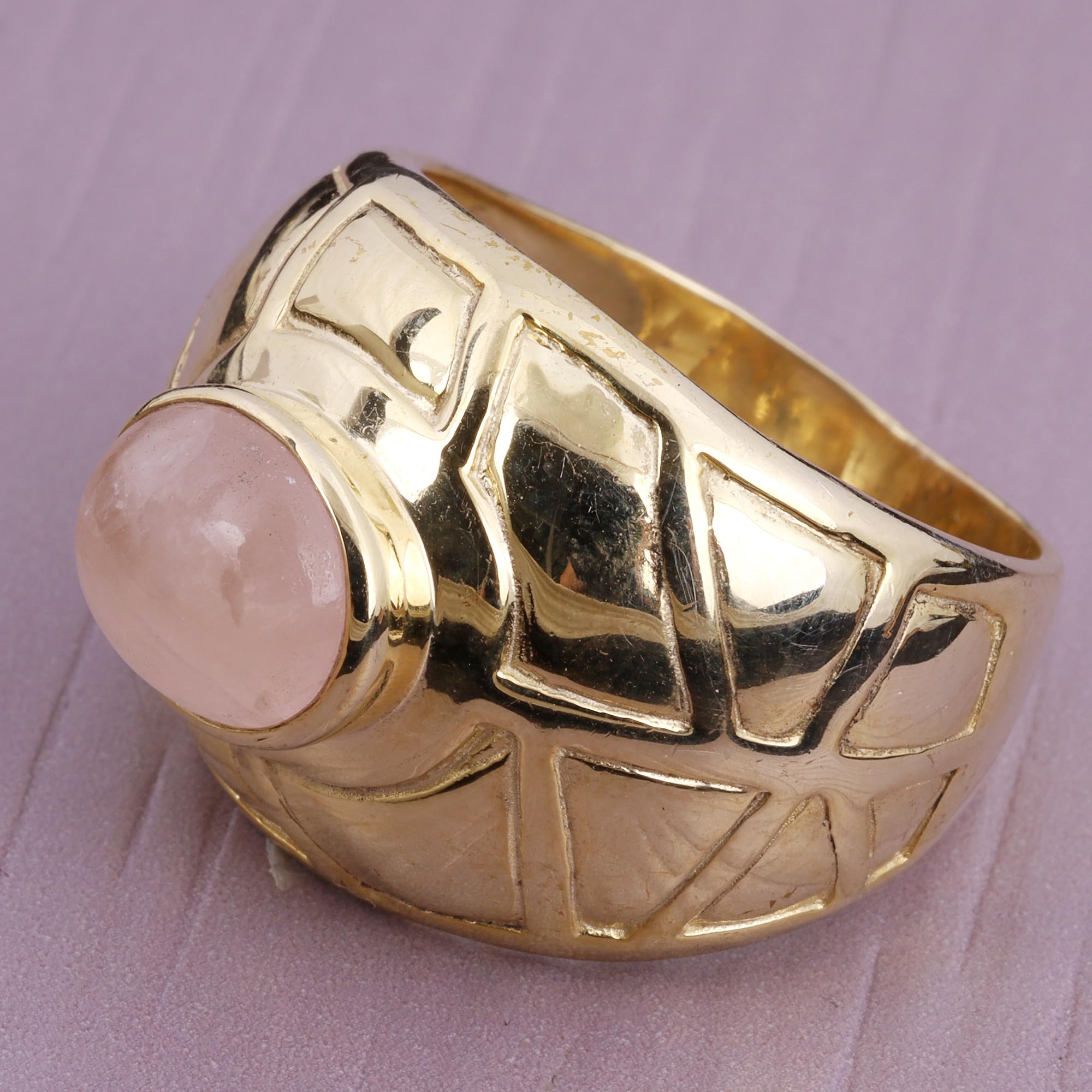 Natural Rose Quartz Ring Yellow Gold Brass Ring Handmade Signet Ring Size 9 USA mothers day gifts