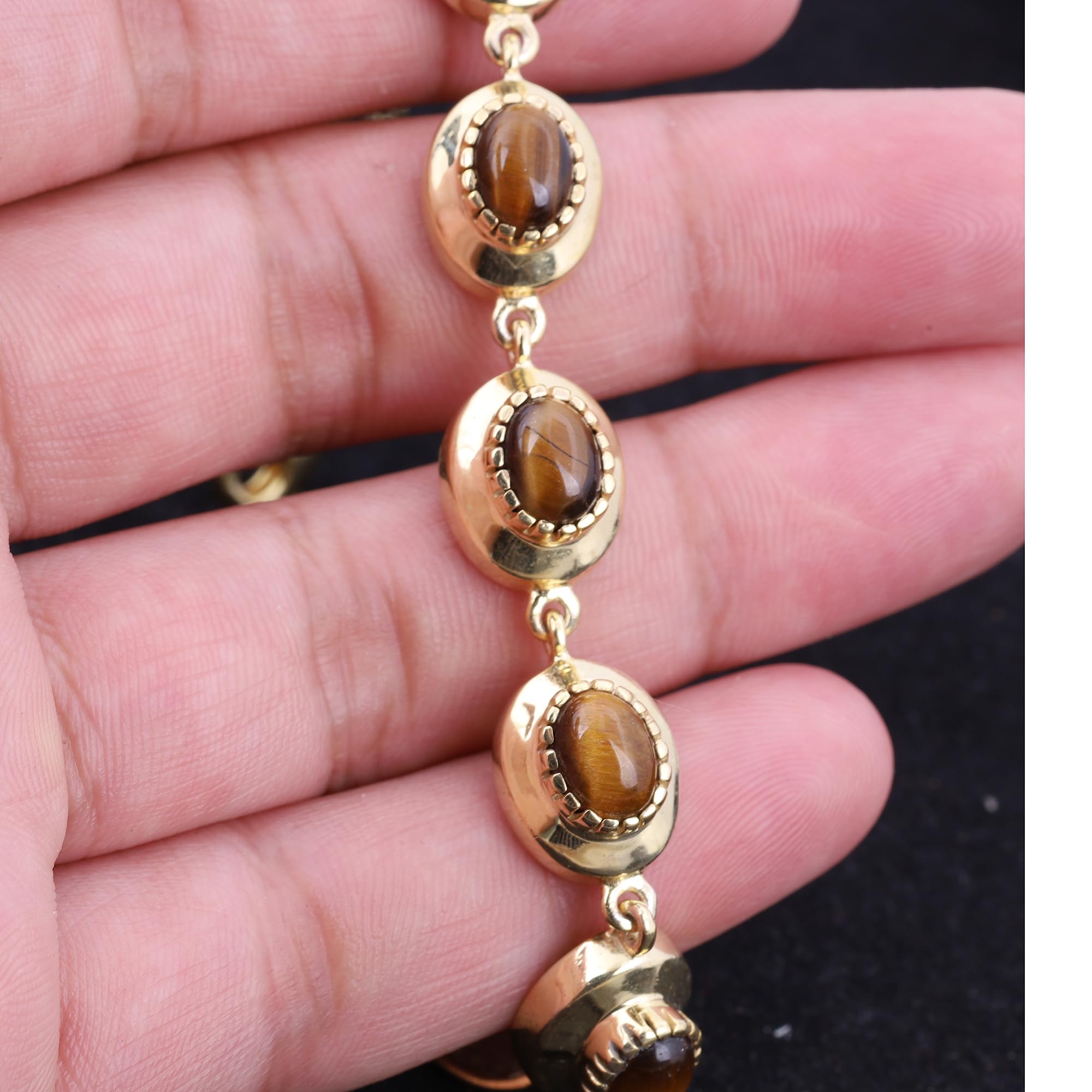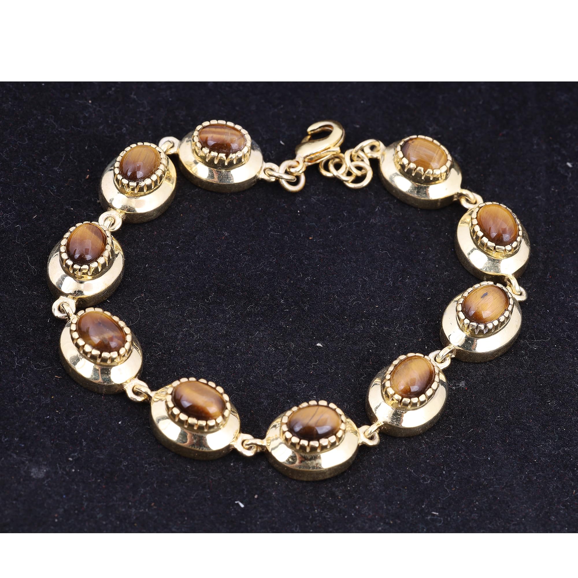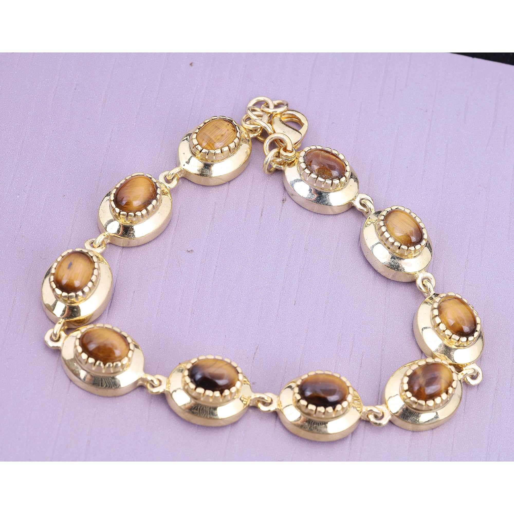 Natural Tiger Eye Bracelet Yellow Gold Overlay Brass Bracelet Handmade Link Bracelet Jewelry mothers day gifts