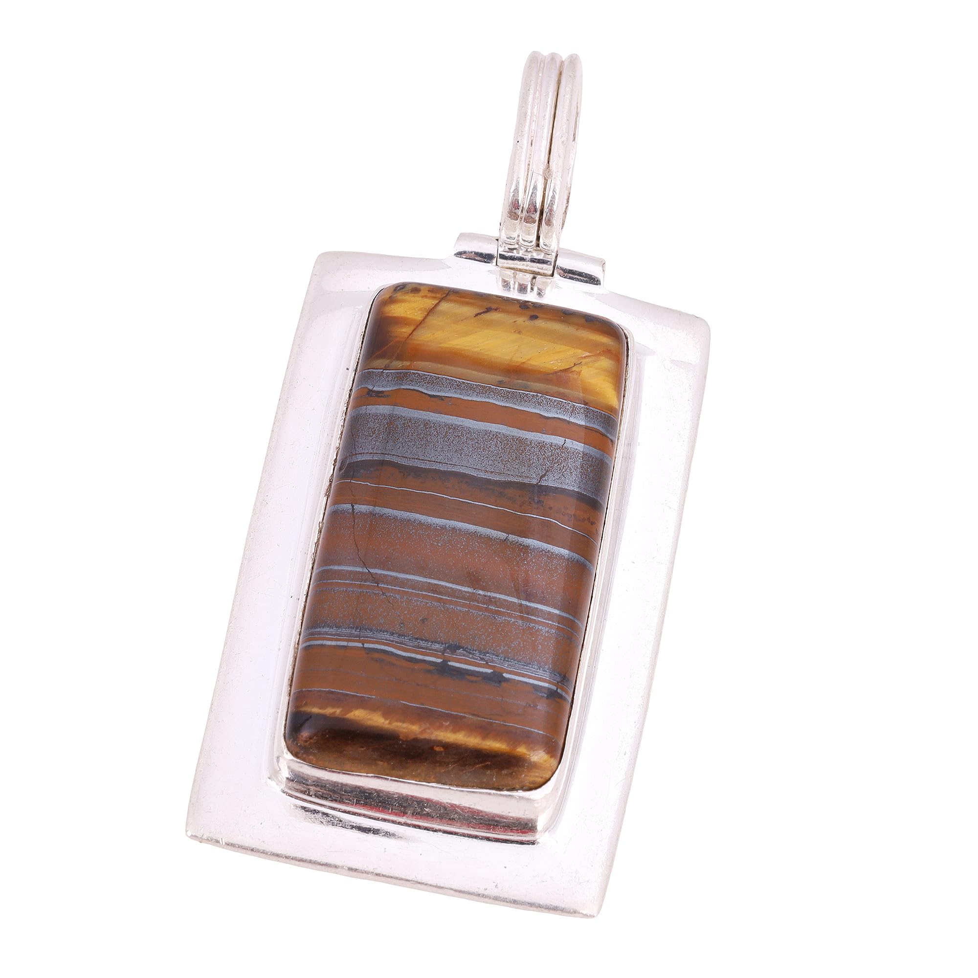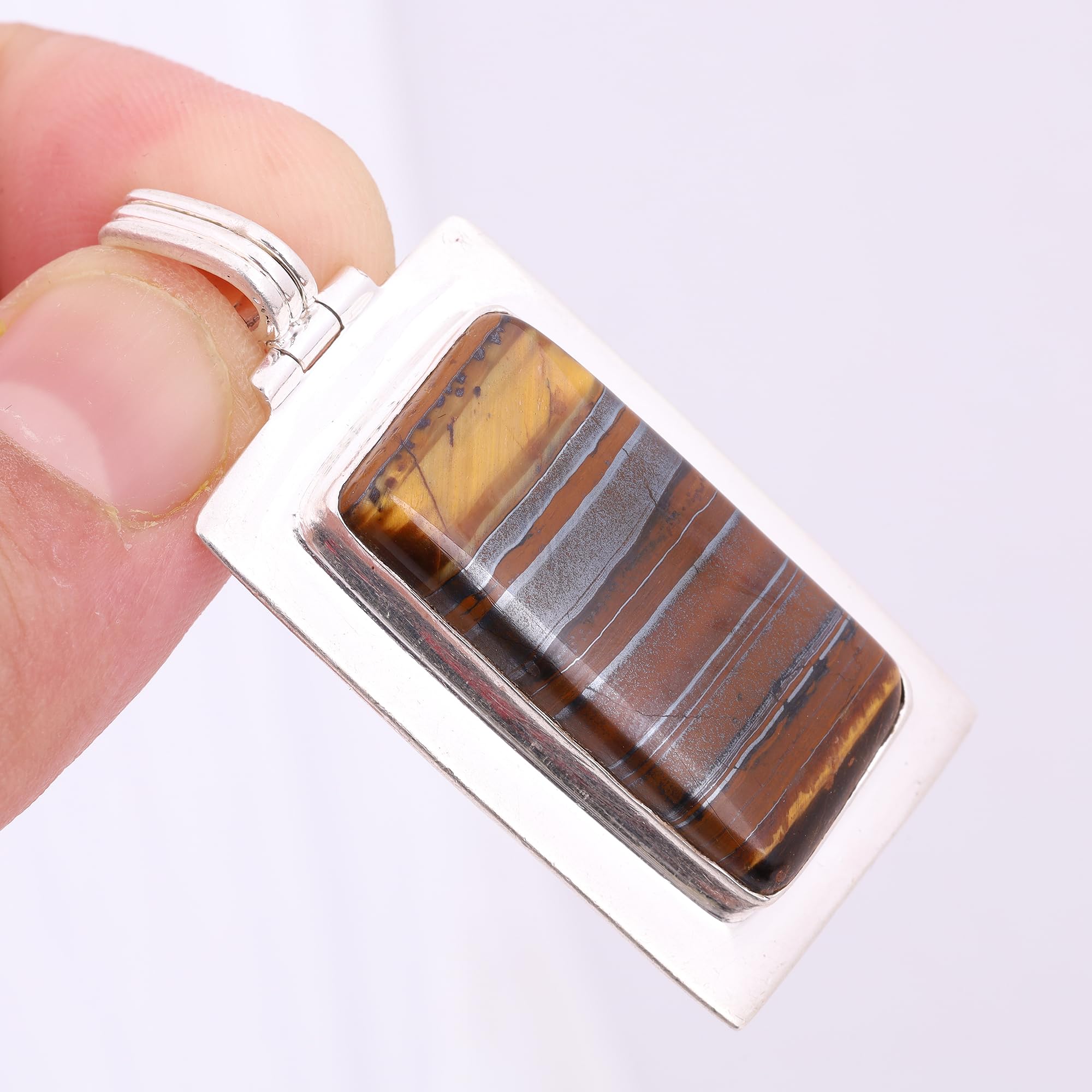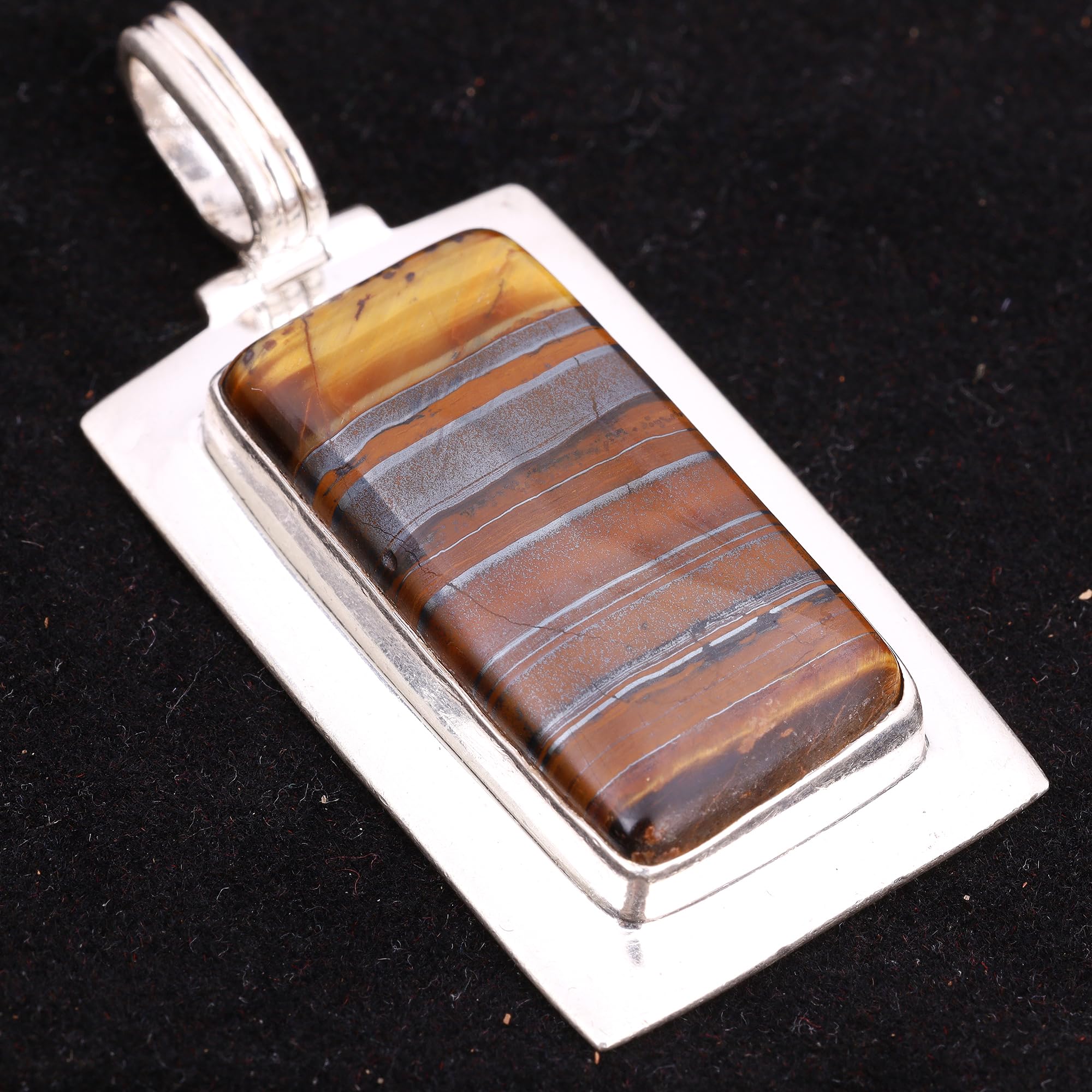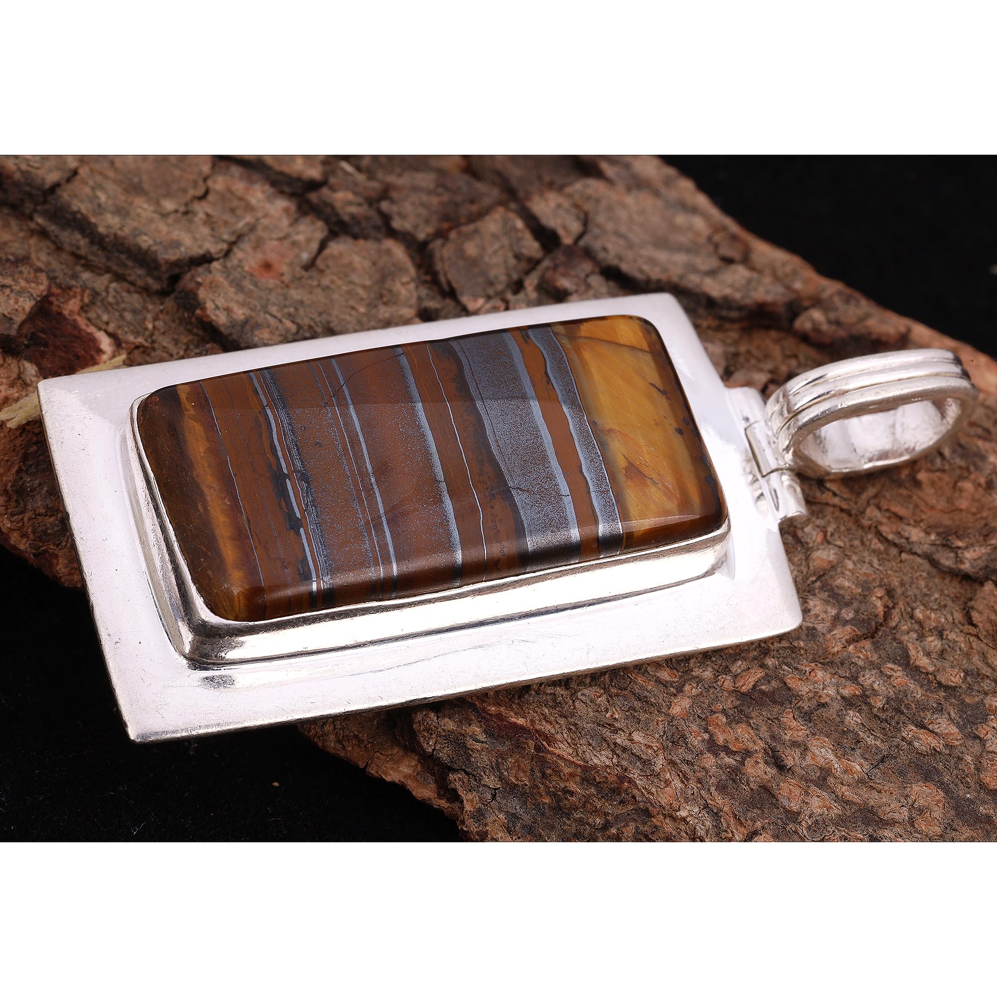 Natural Tiger Eye Gemstone Pendant, Heavy 925 Sterling Silver Pendant