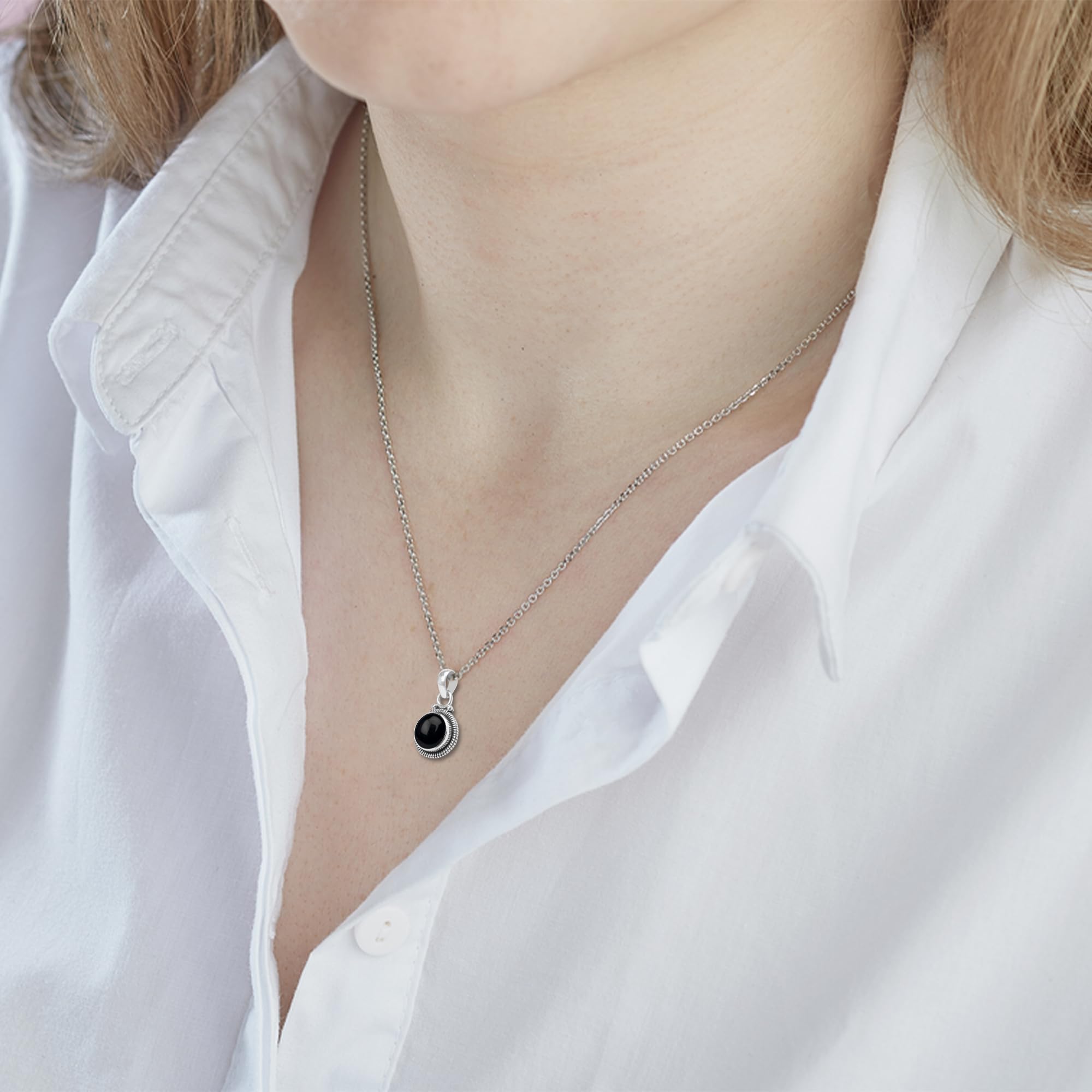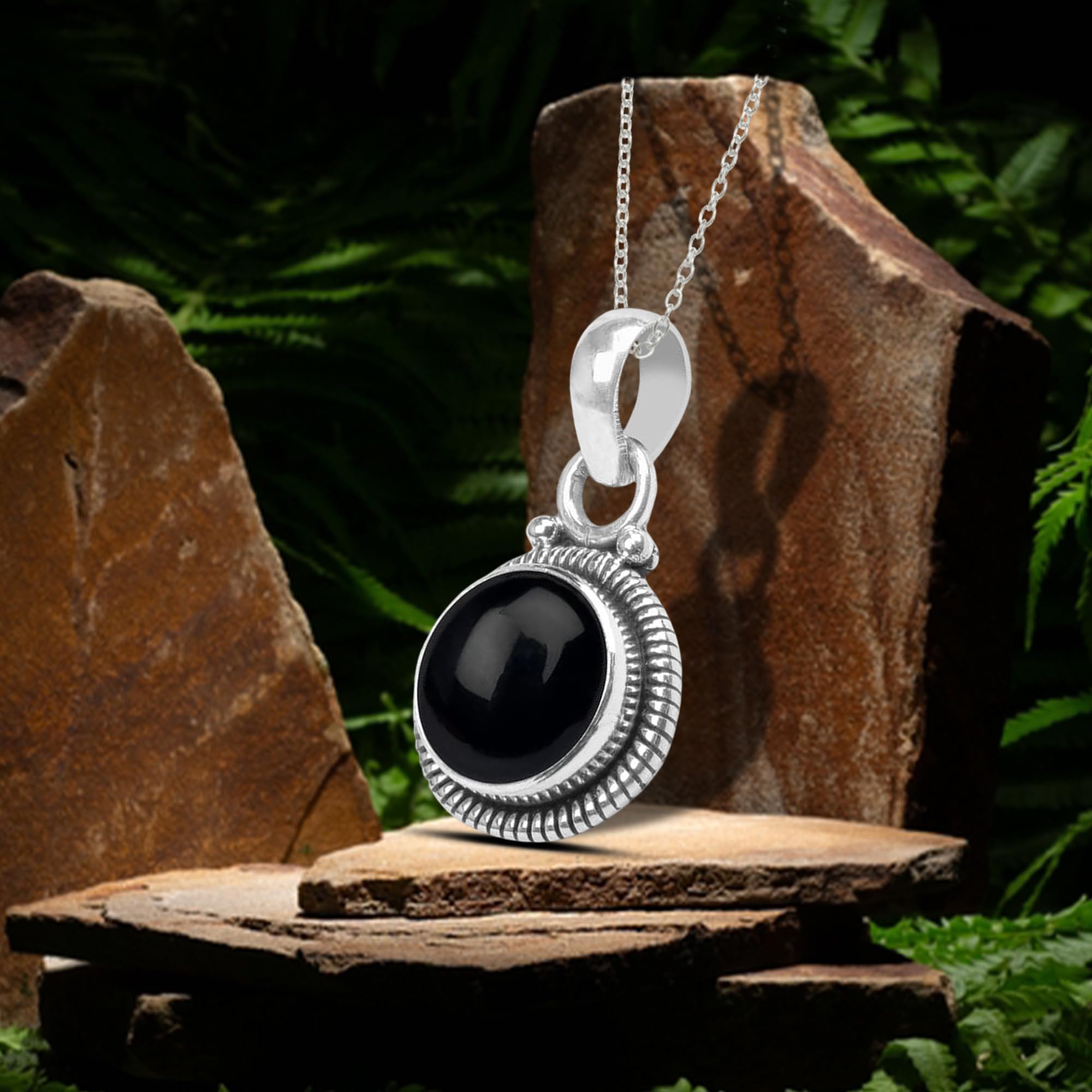 Obsidian Halo - Pendant with Classic Coil Bezel DesignObsidian Halo – Pendant with Classic Coil Bezel Design