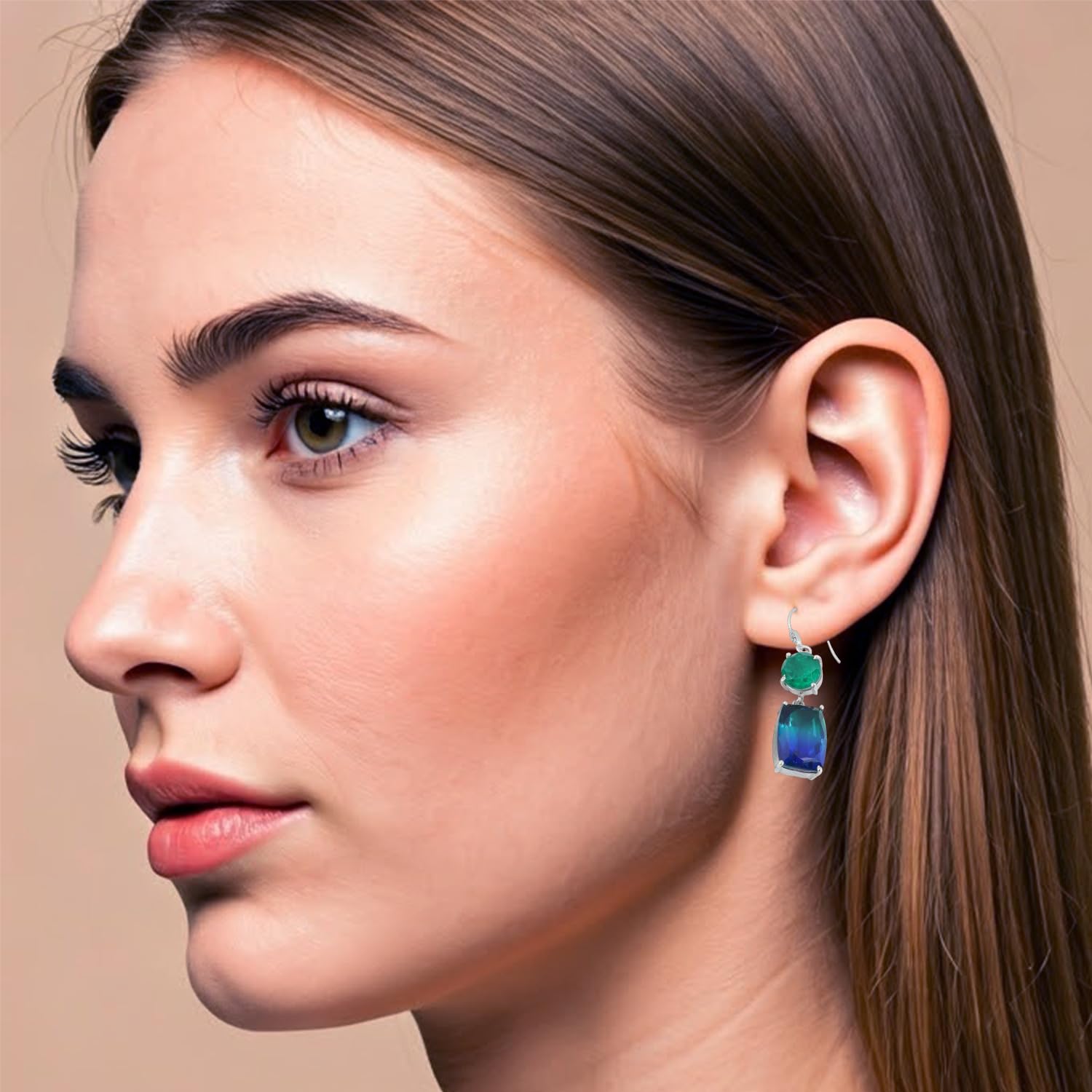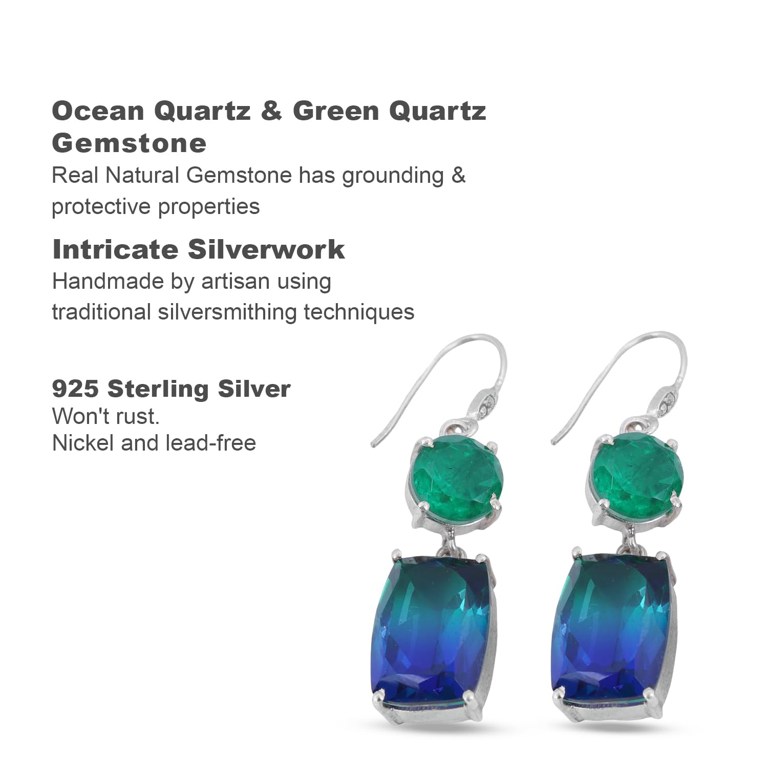 Ocean Quartz & Green Quartz Earring Handmade Prong Setting Earring For Women 925 Sterling Silver Earring mothers day gifts