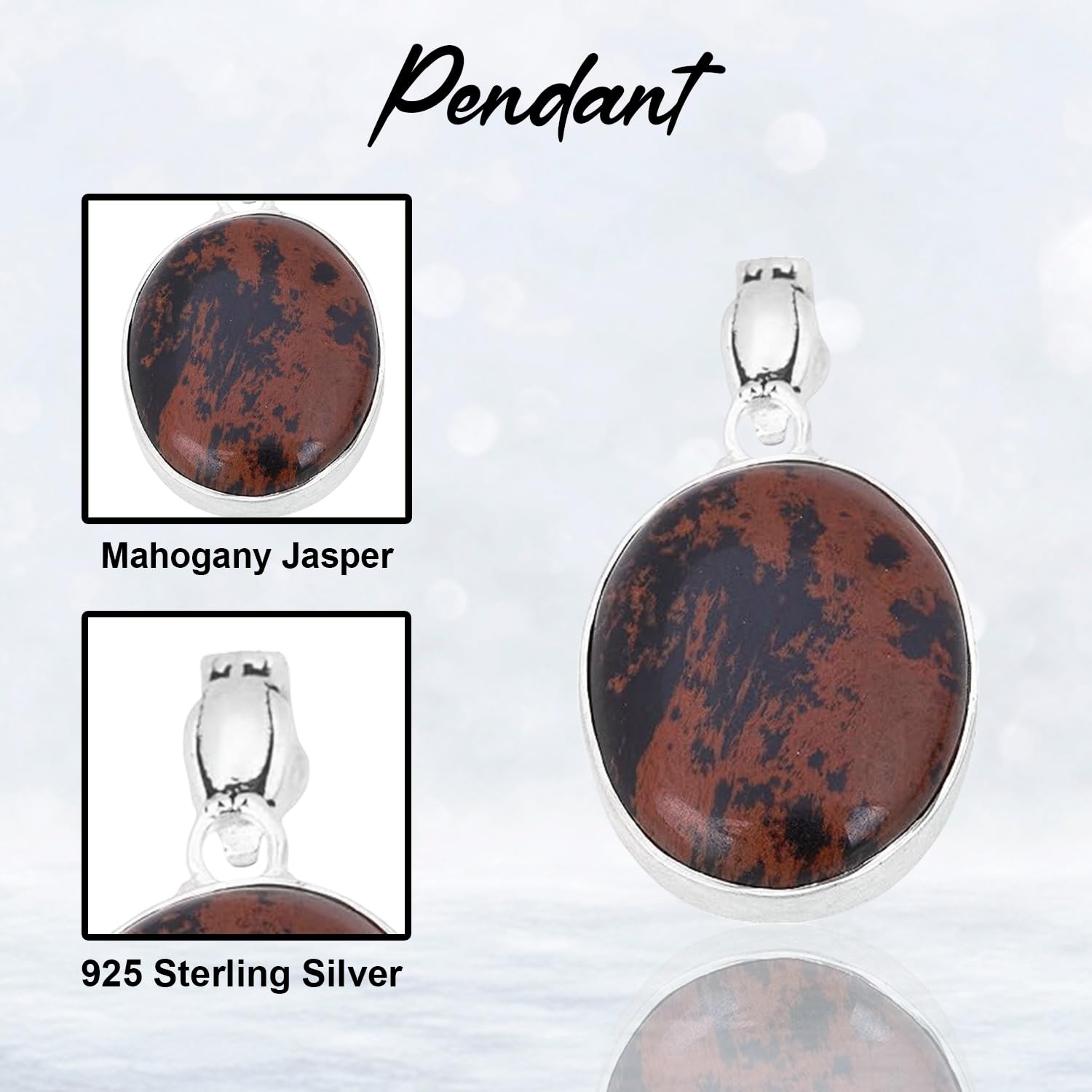 Owl Shape Ball Mahogany Jasper Pendant, Chunky Gemstone 925 Sterling Silver Pendant