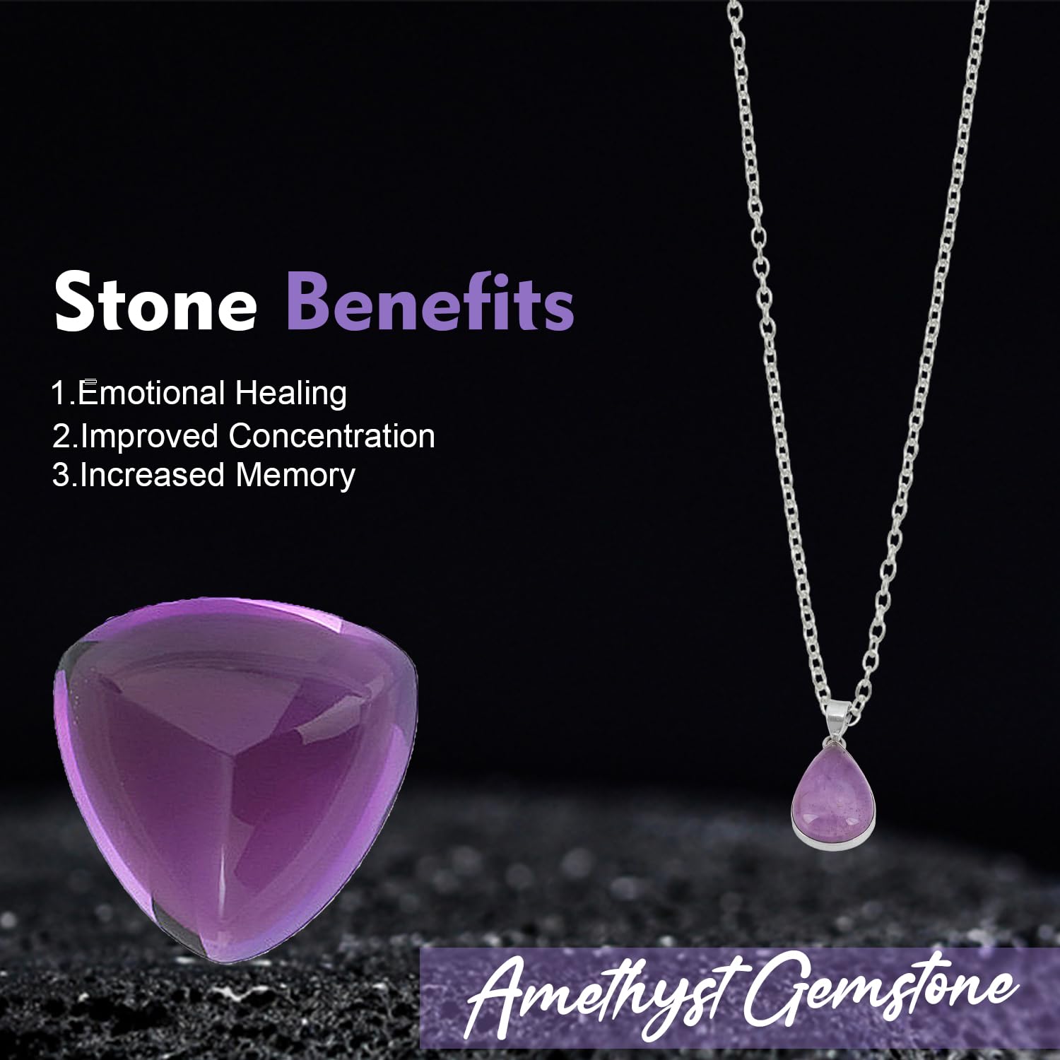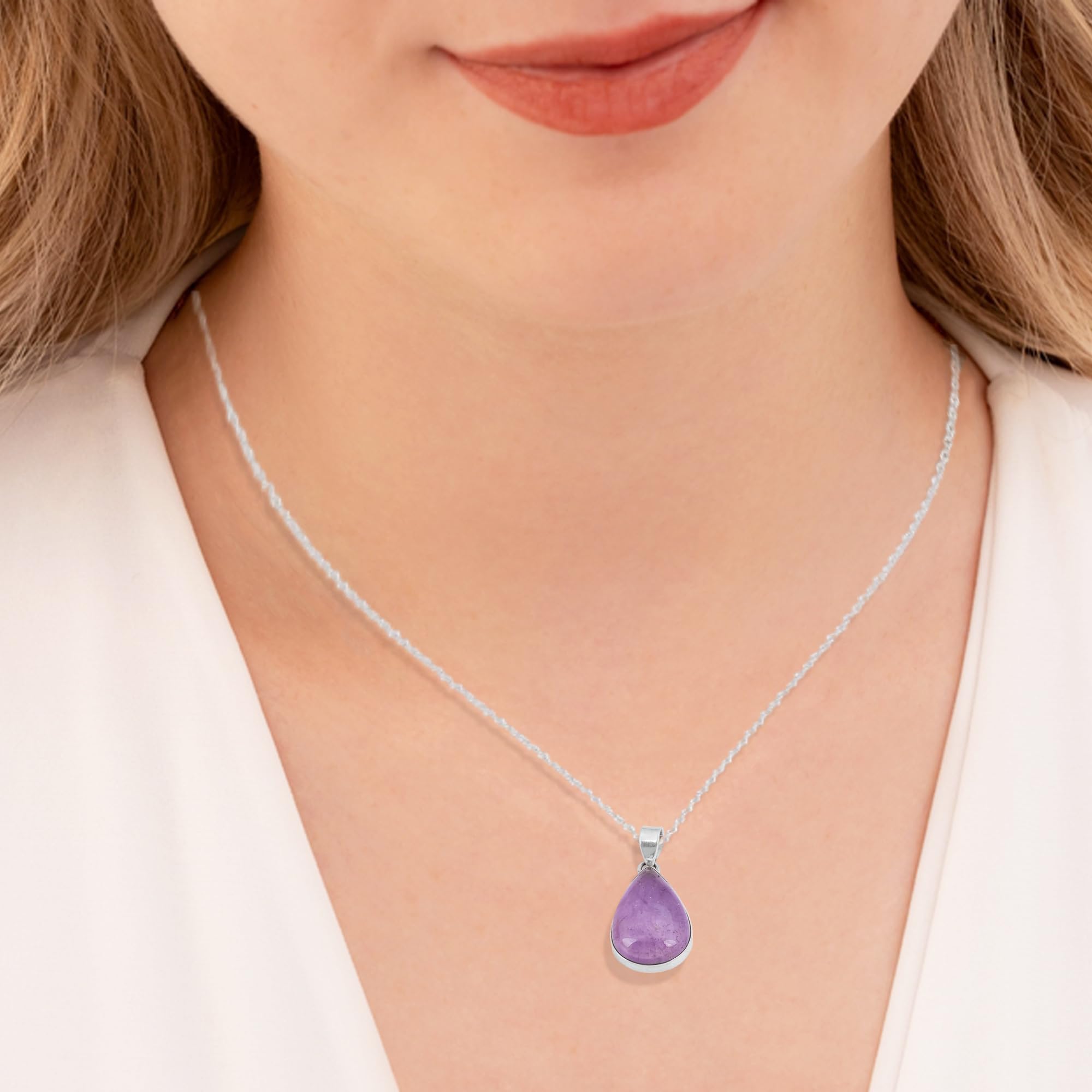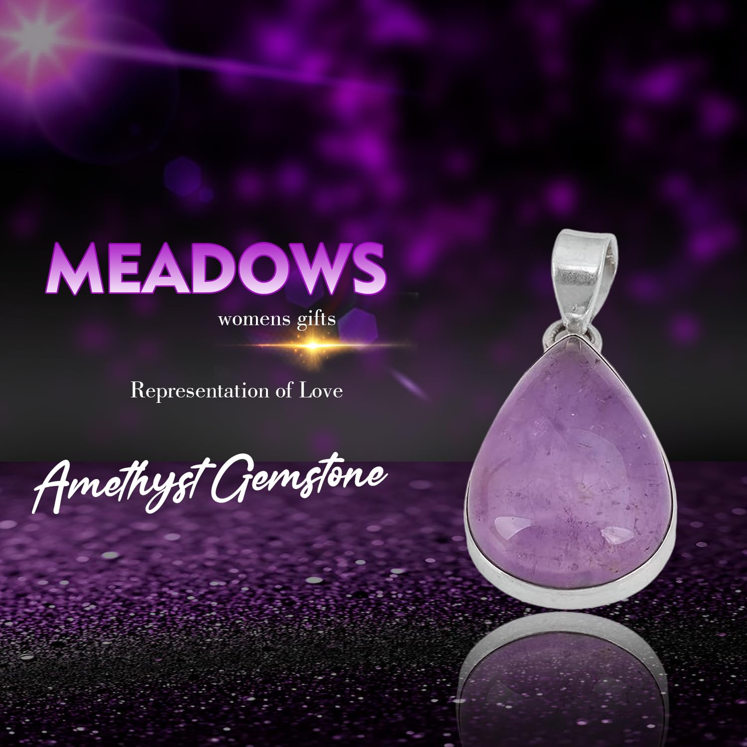 Pear Amethyst Cabochon Pendant, Chunky Gemstone 925 Sterling Silver Pendant