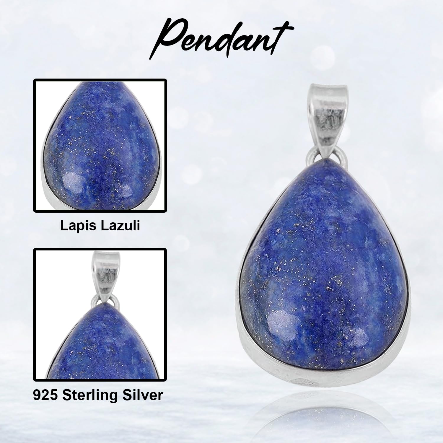 Pear Lapis Lazuli Cabochon Pendant, 925 Sterling Silver Gemstone Pendant