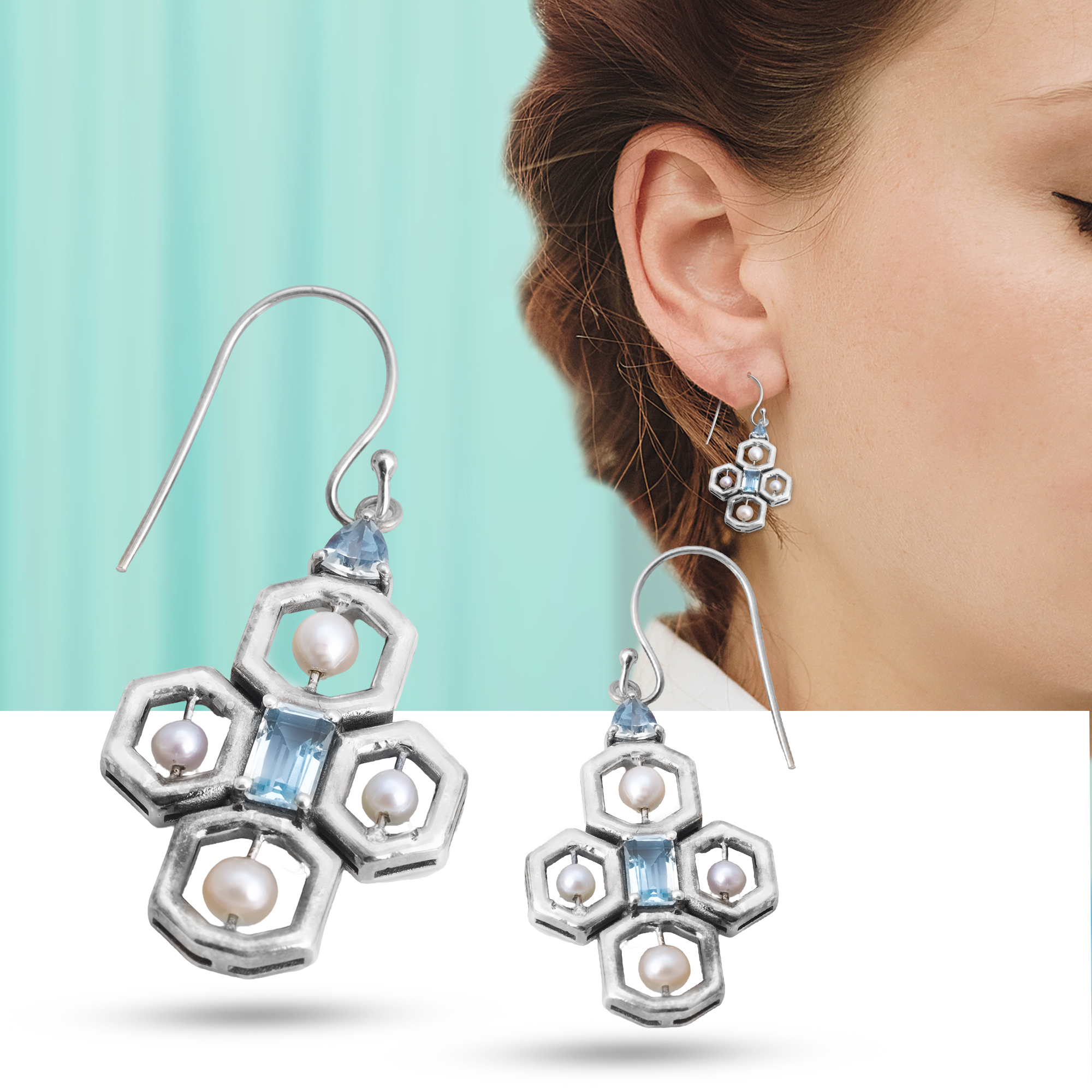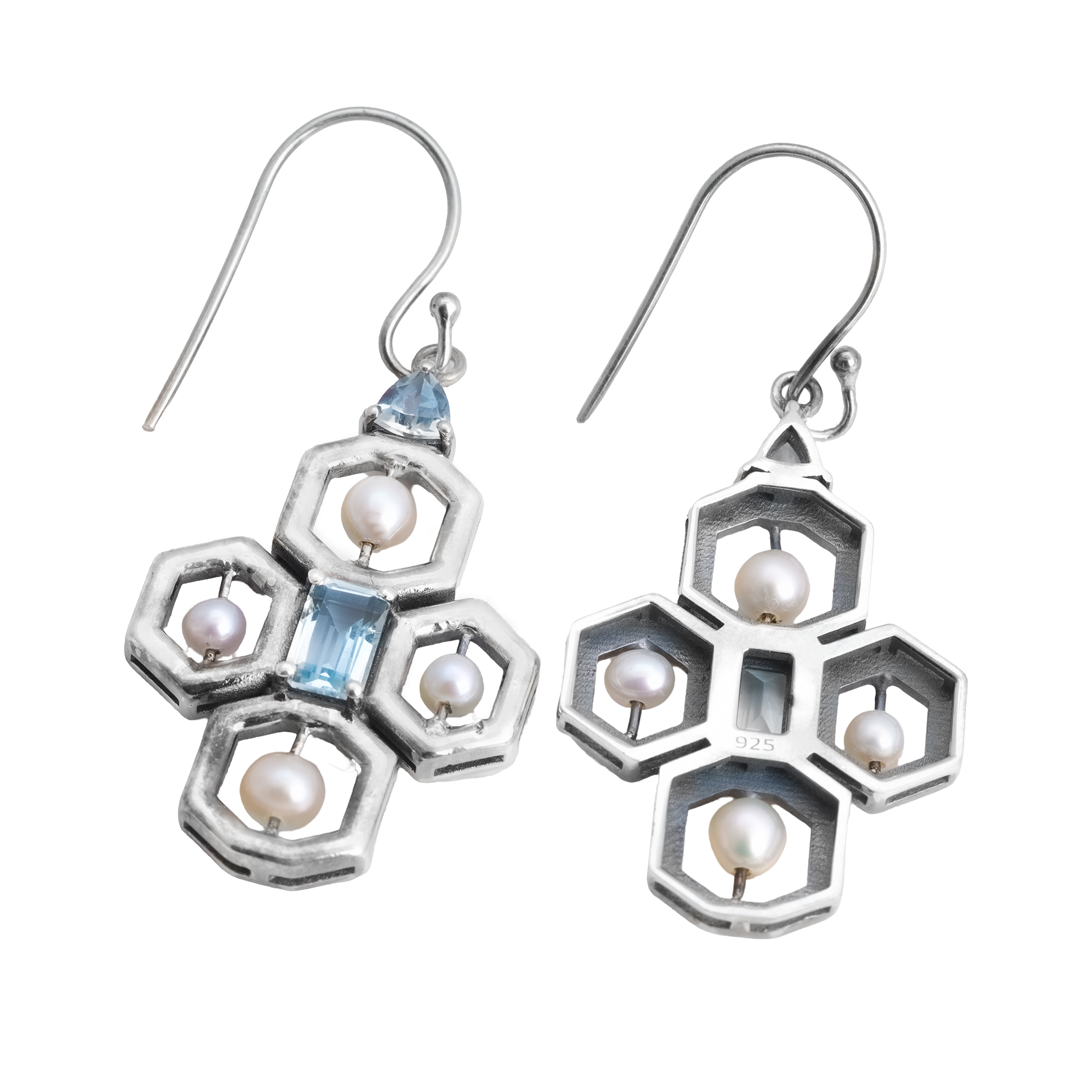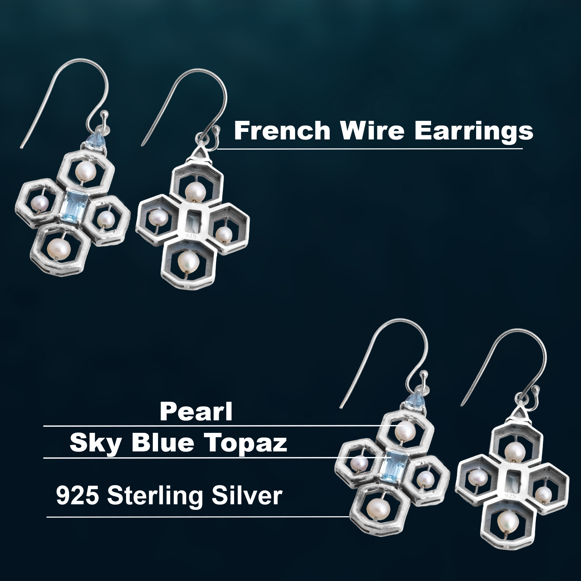 Add a graceful charm to your ensemble with these handcrafted dangle earrings featuring natural Blue Quartz and lustrous Pearls. Set in genuine 925 sterling silver, these earrings are lightweight, hypoallergenic, and designed for women who appreciate timeless elegance with a modern twist.