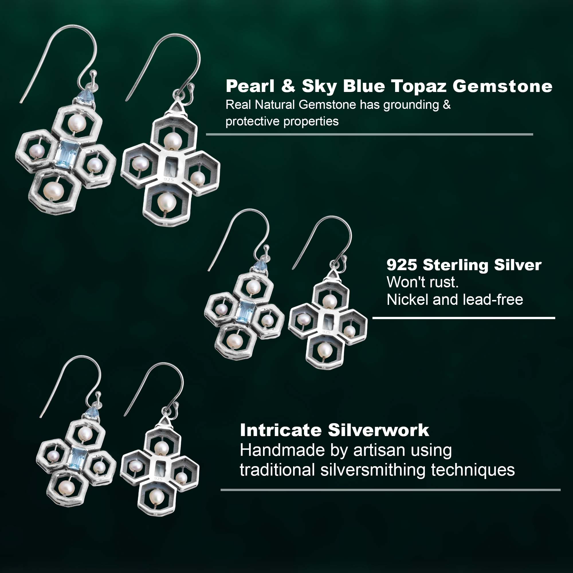 ? Meadows 925 Sterling Silver Pearl & Blue Quartz Dangle Earrings ? A Perfect Blend of Elegance & Sophistication ?