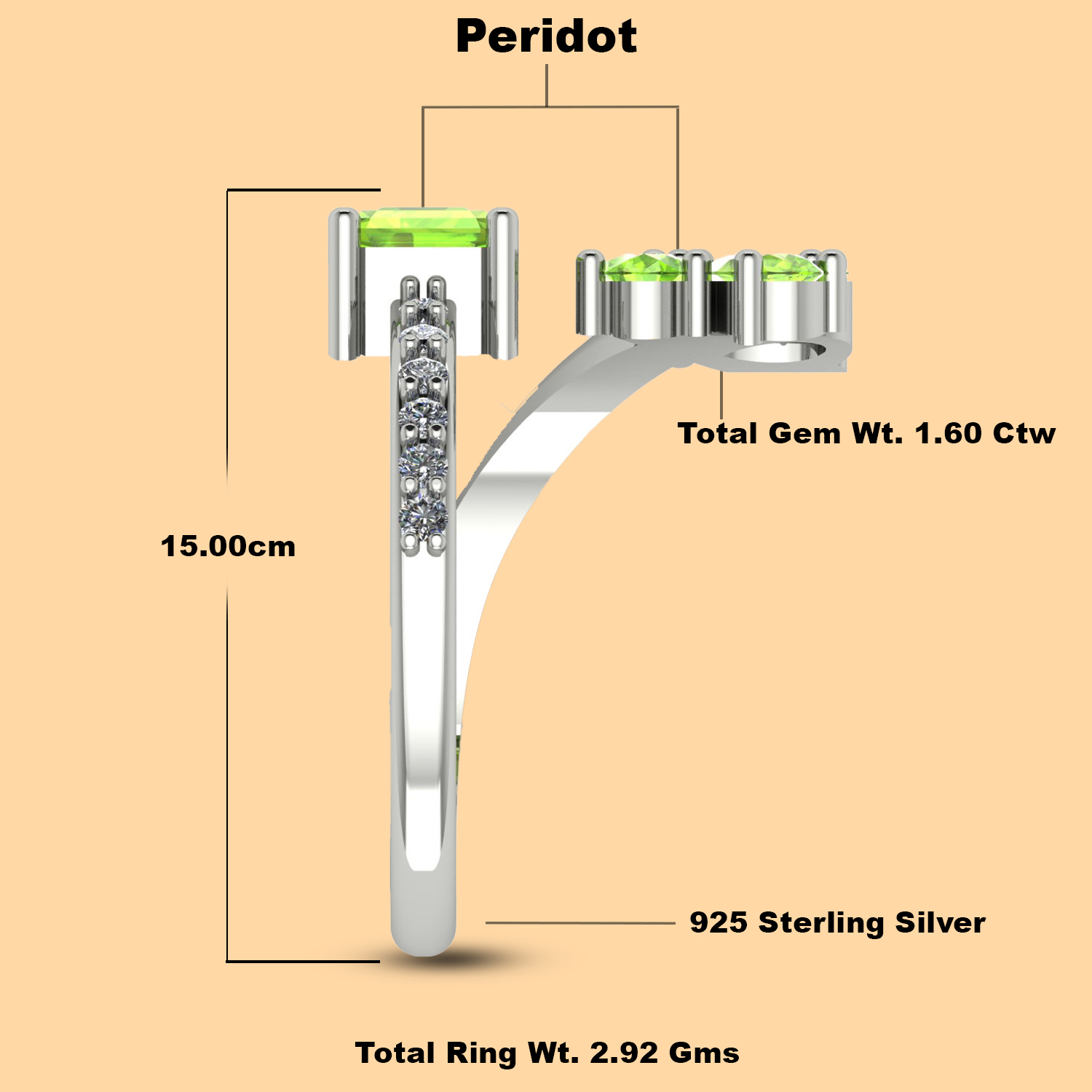 The Peridot?s lively green color symbolizes renewal and vitality, making this ring a meaningful and stylish choice. Its adjustable design makes it perfect for gifting, ensuring a flawless fit for any finger.