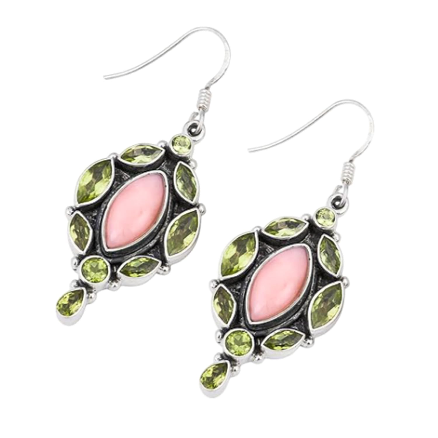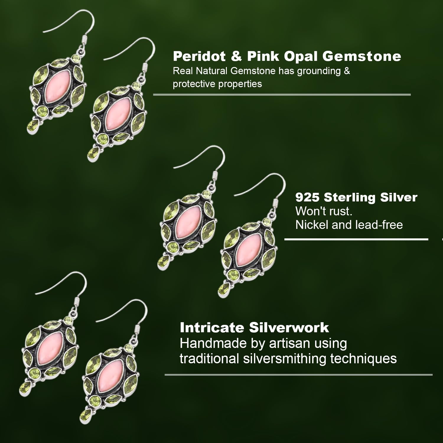 Peridot & Pink Opal Earring, 925 Sterling Silver Earring, Bohemian Women Gift Earrings mothers day gifts