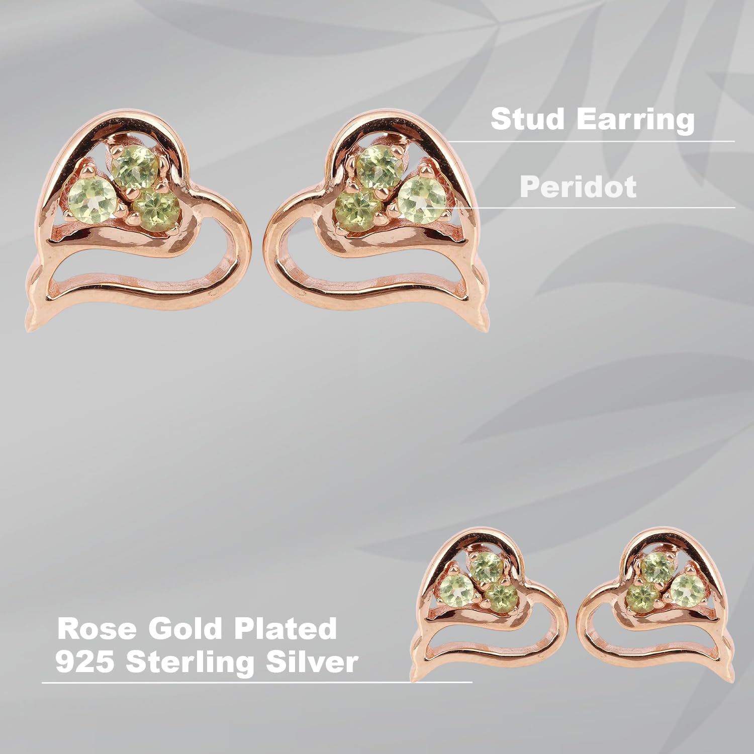 Peridot Stud Earring, Gemstone Earring, Rose Gold Plated 925 Sterling Silver Earring mothers day gifts
