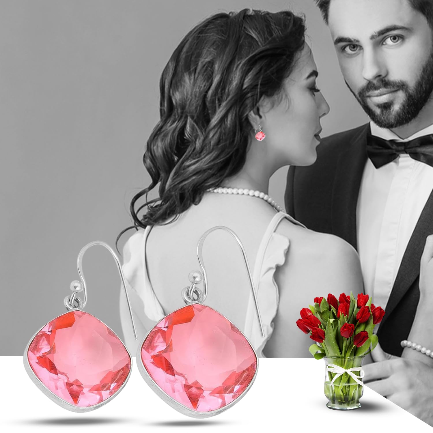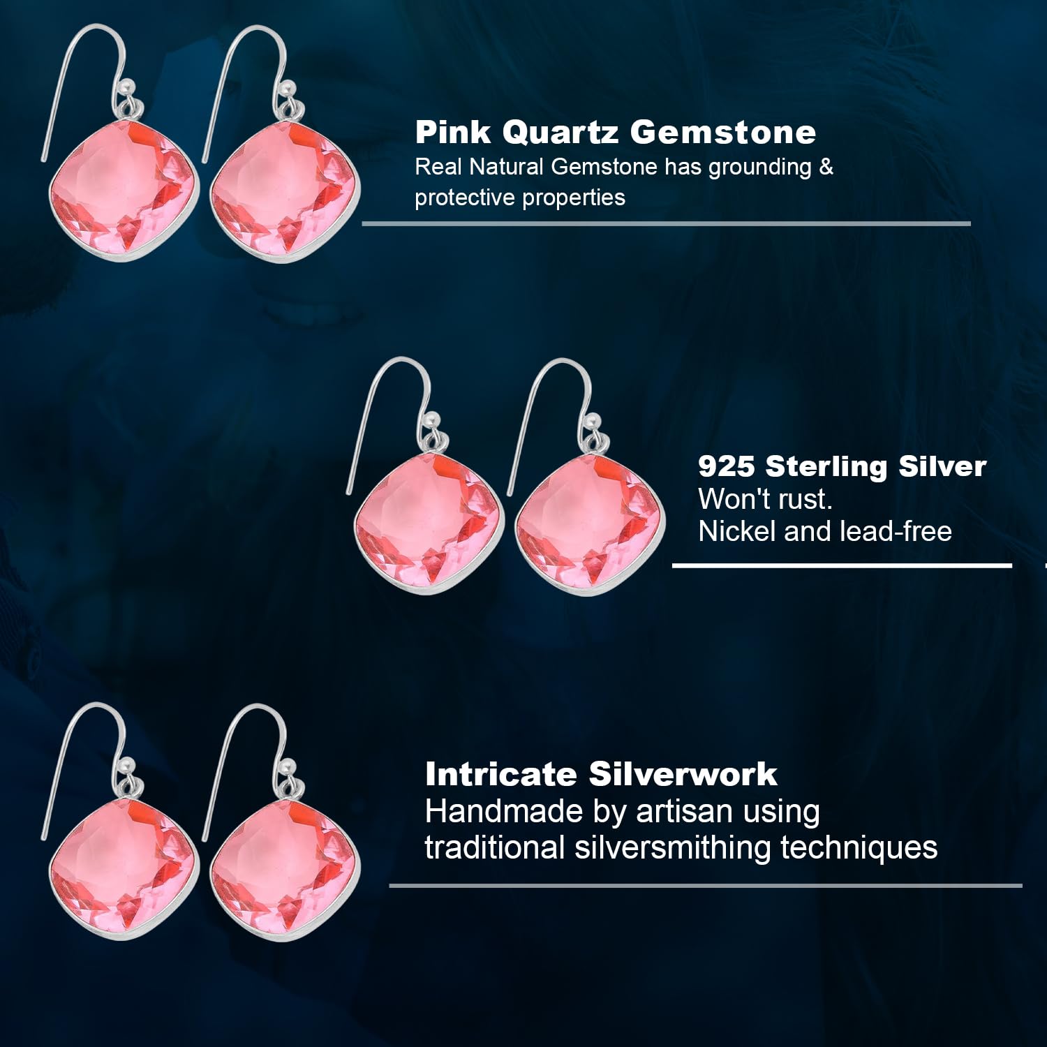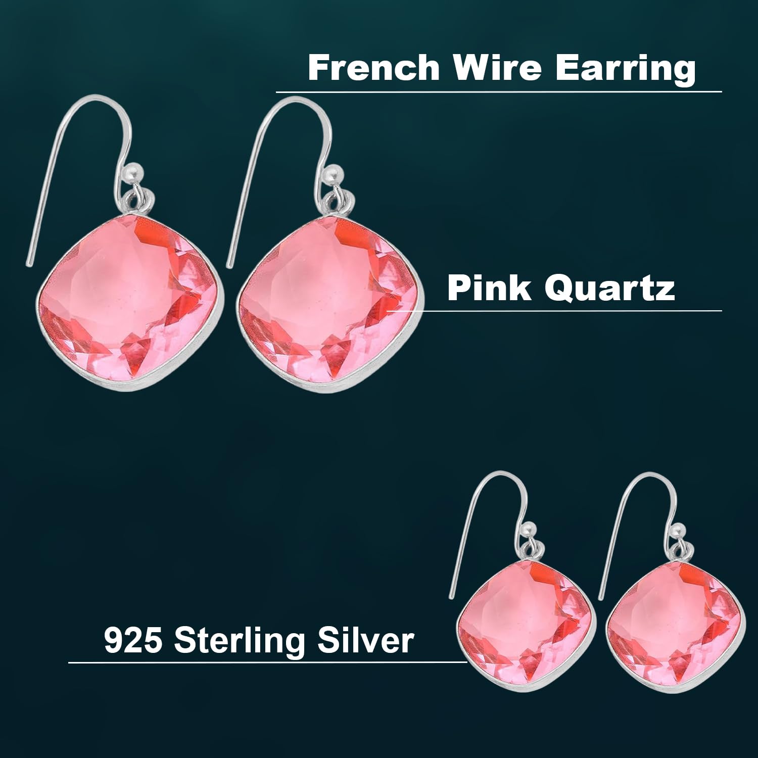 Pink Quartz Earring, Gemstone Earring, 925 Sterling Silver Earrings mothers day gifts