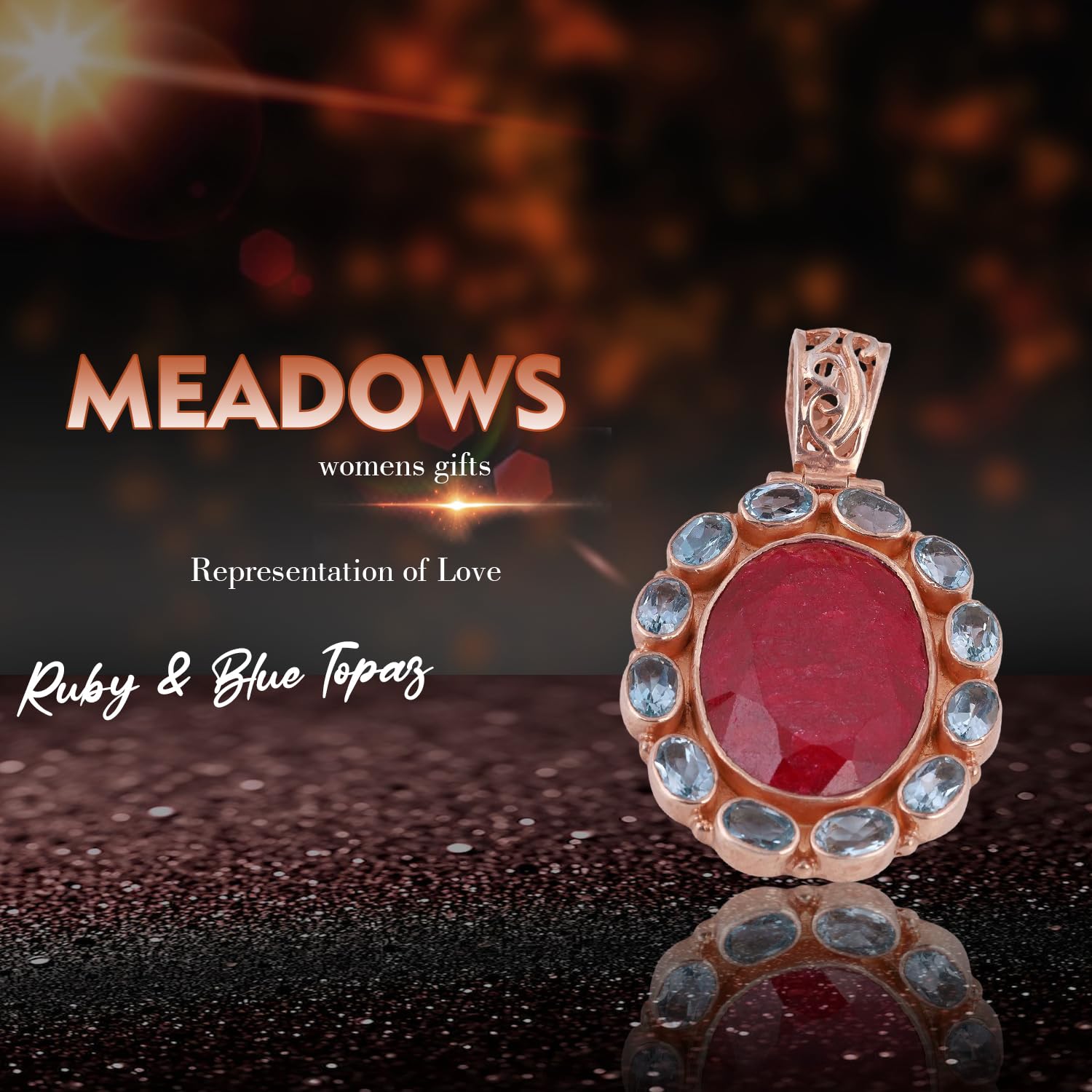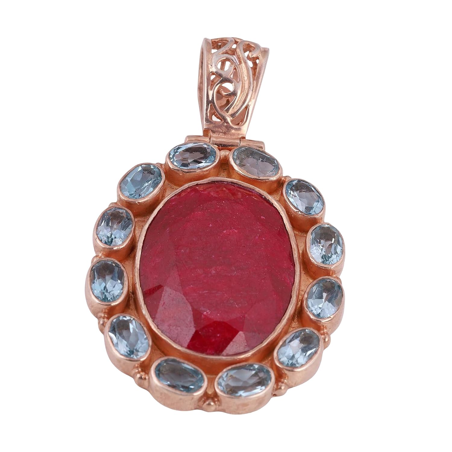 Pink Ruby & Blue Topaz Pendant 925 Sterling Silver Handmade Statement Pendant Jewelry mothers day gifts