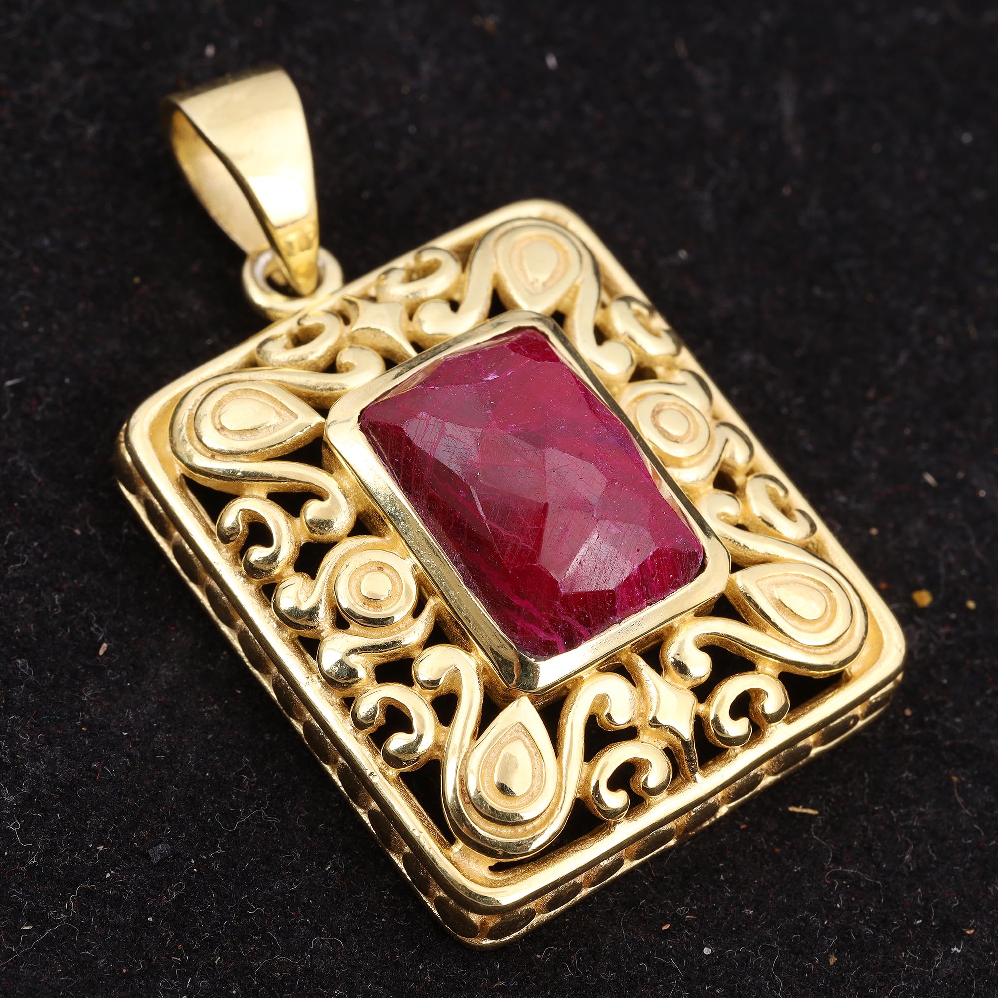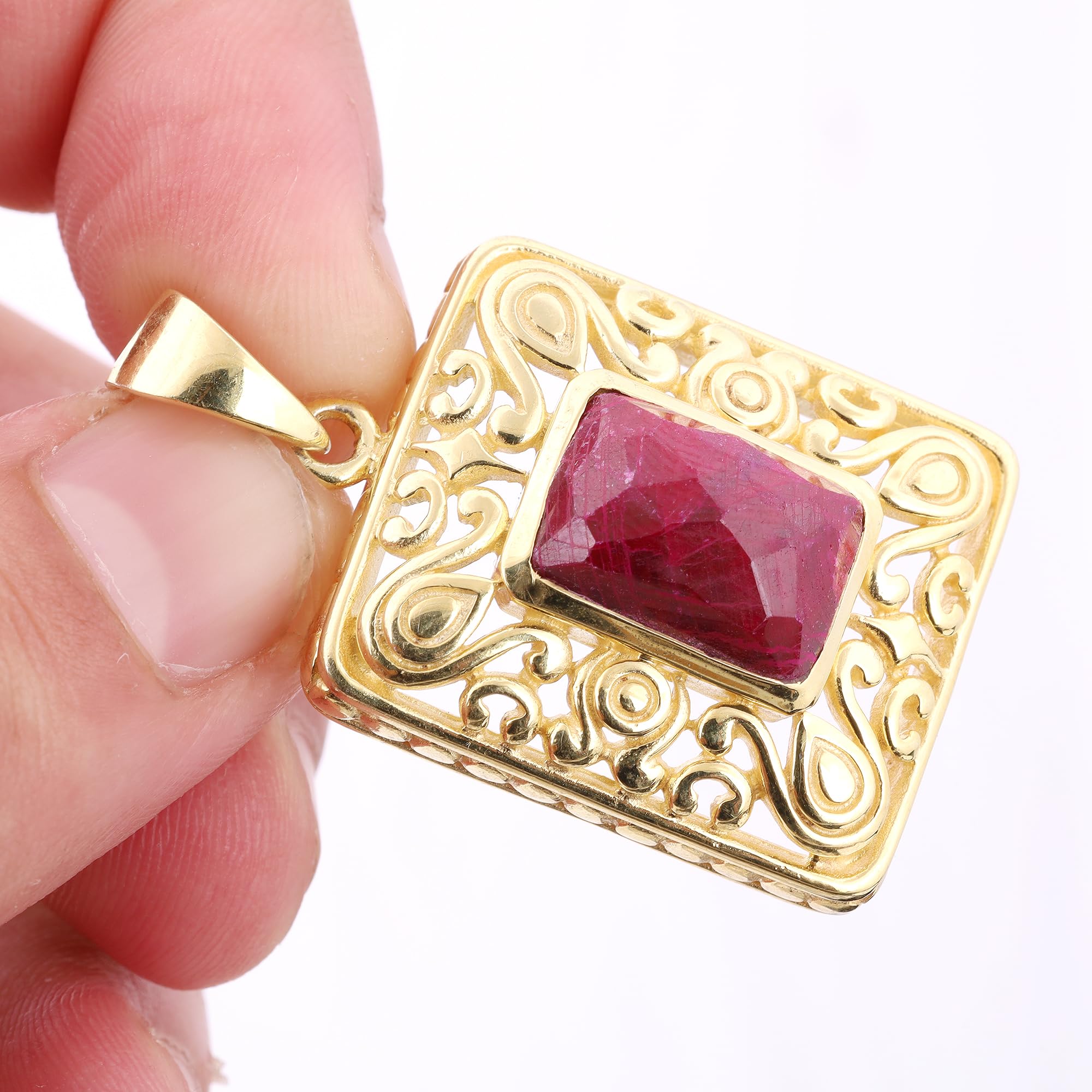 Pink Ruby Gemstone Pendant For Women Yellow Gold Brass Pendant Fashion JewelryPink Ruby Gemstone Pendant For Women Yellow Gold Brass Pendant Fashion Jewelry