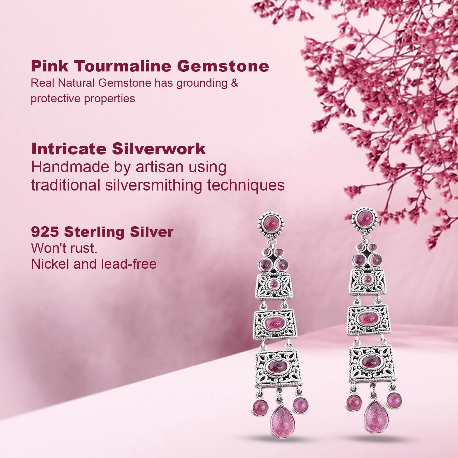 Pink Tourmaline Earring, Gemstone Earring, Designer 925 Sterling Silver mothers day gifts