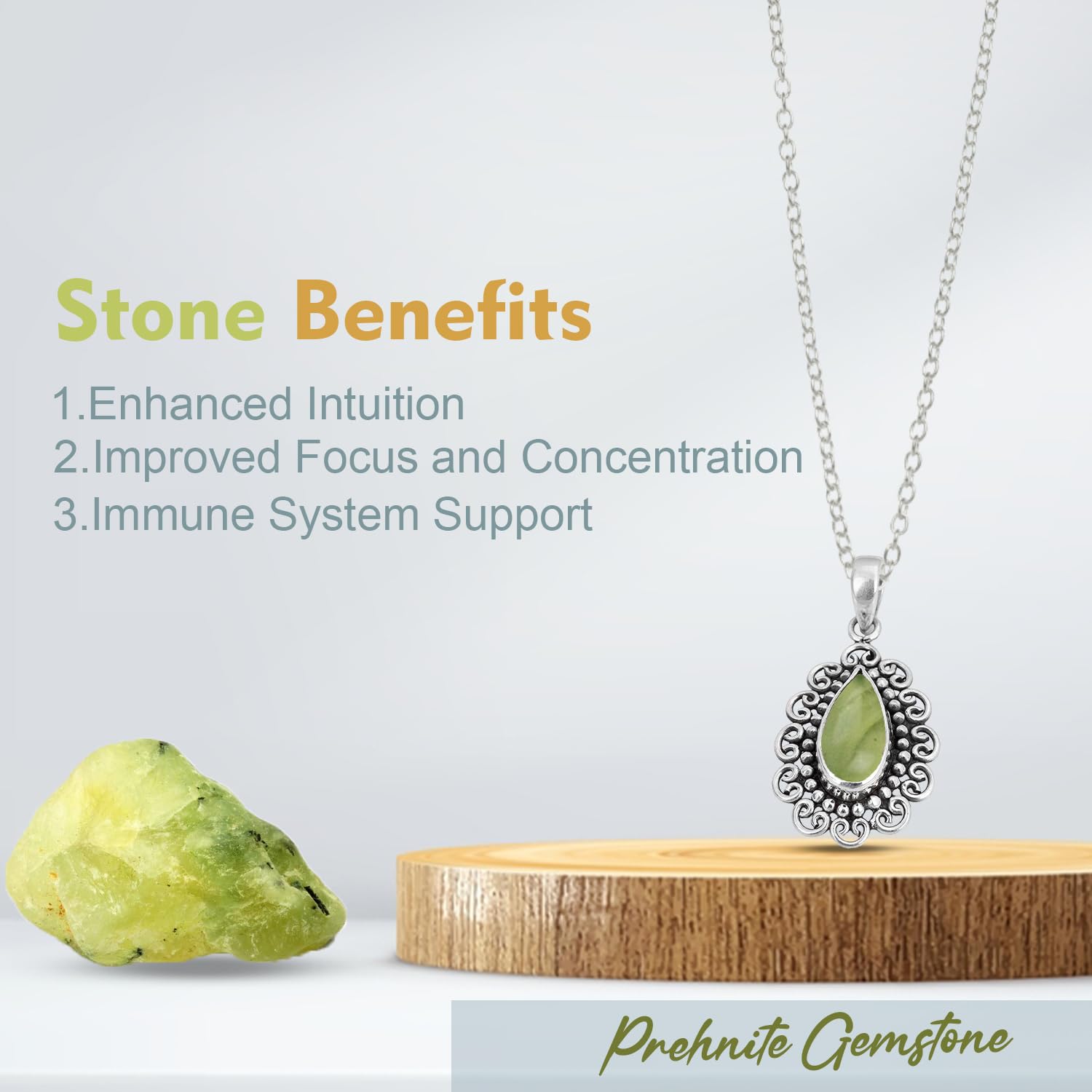 Prehnite Gemstone Pendant, 925 Sterling Silver Handmade Pendant, Gift For Women