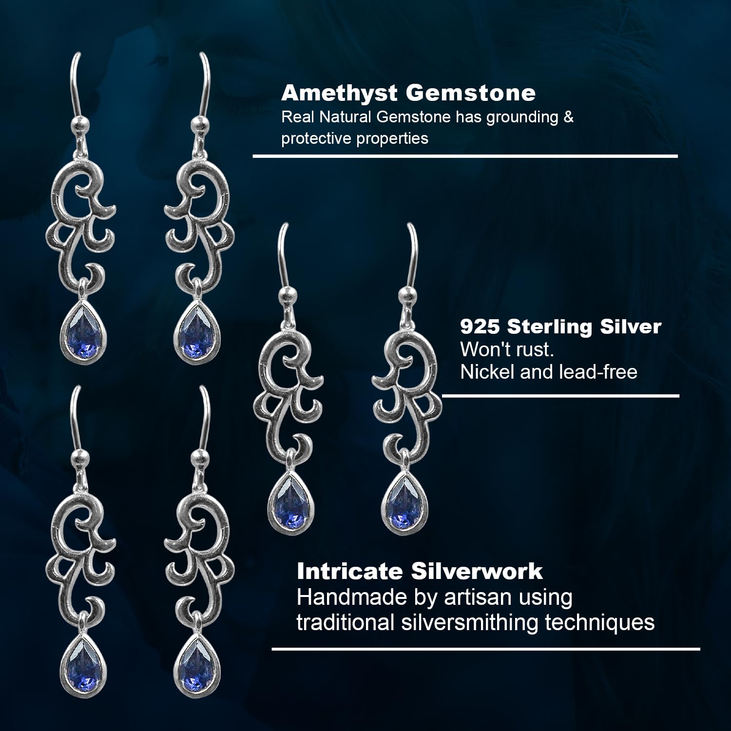 Purple Amethyst Earring, Healing Crystal Earring, 925 Sterling Silver Earring, Bohemian Earring
