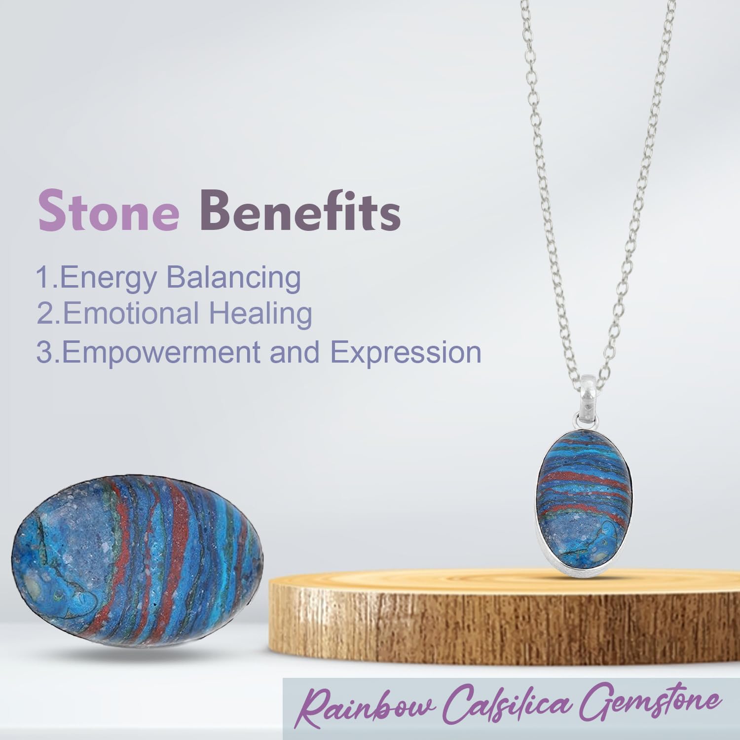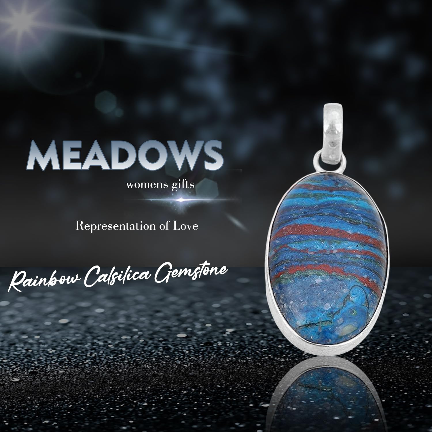Rainbow Calsilica Gemstone Pendant, 925 Sterling Silver Pendant, Statement Jewelry