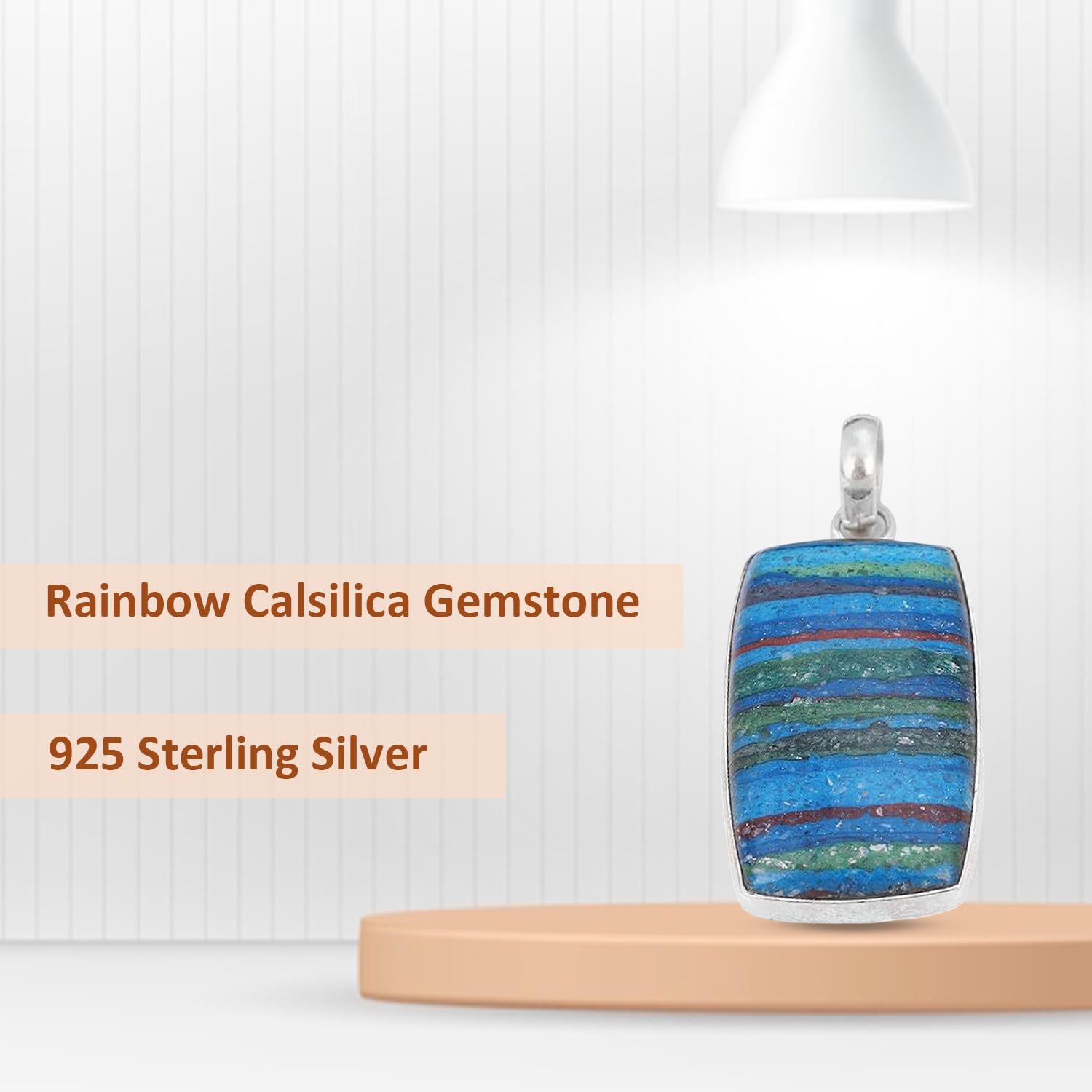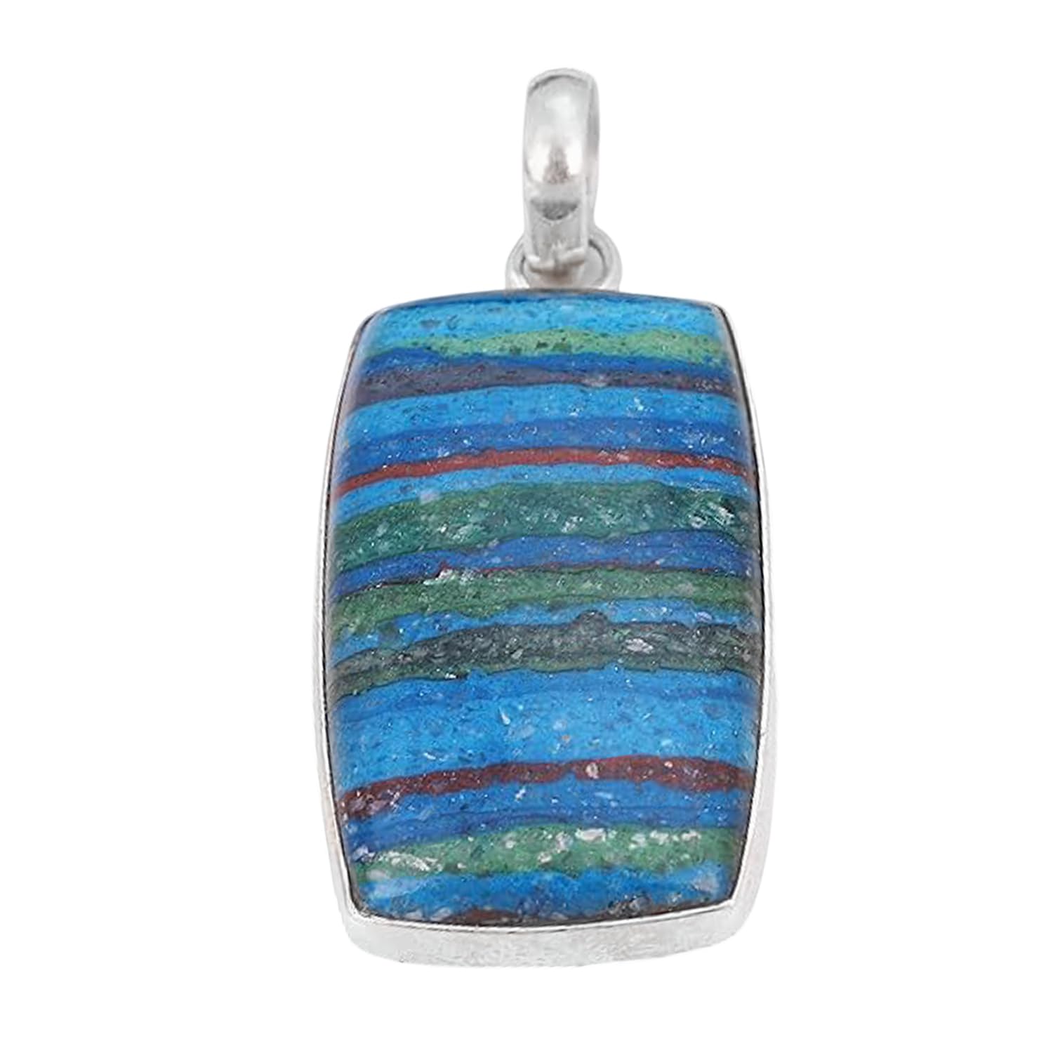 Rainbow Calsilica Pendant, 925 Sterling Silver Cabochon Pendant, Statement Jewelry