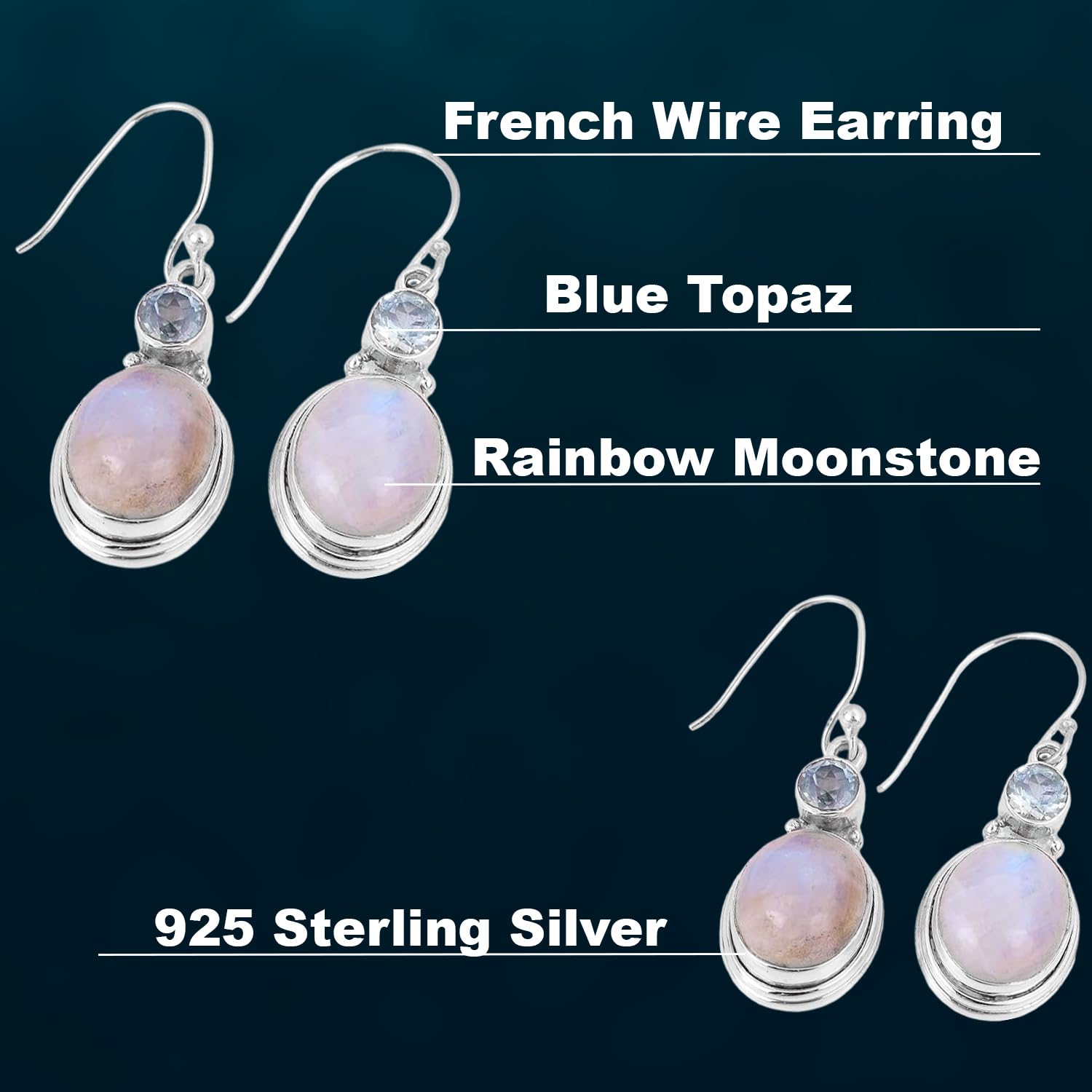 Rainbow Moonstone & Blue Topaz Earring