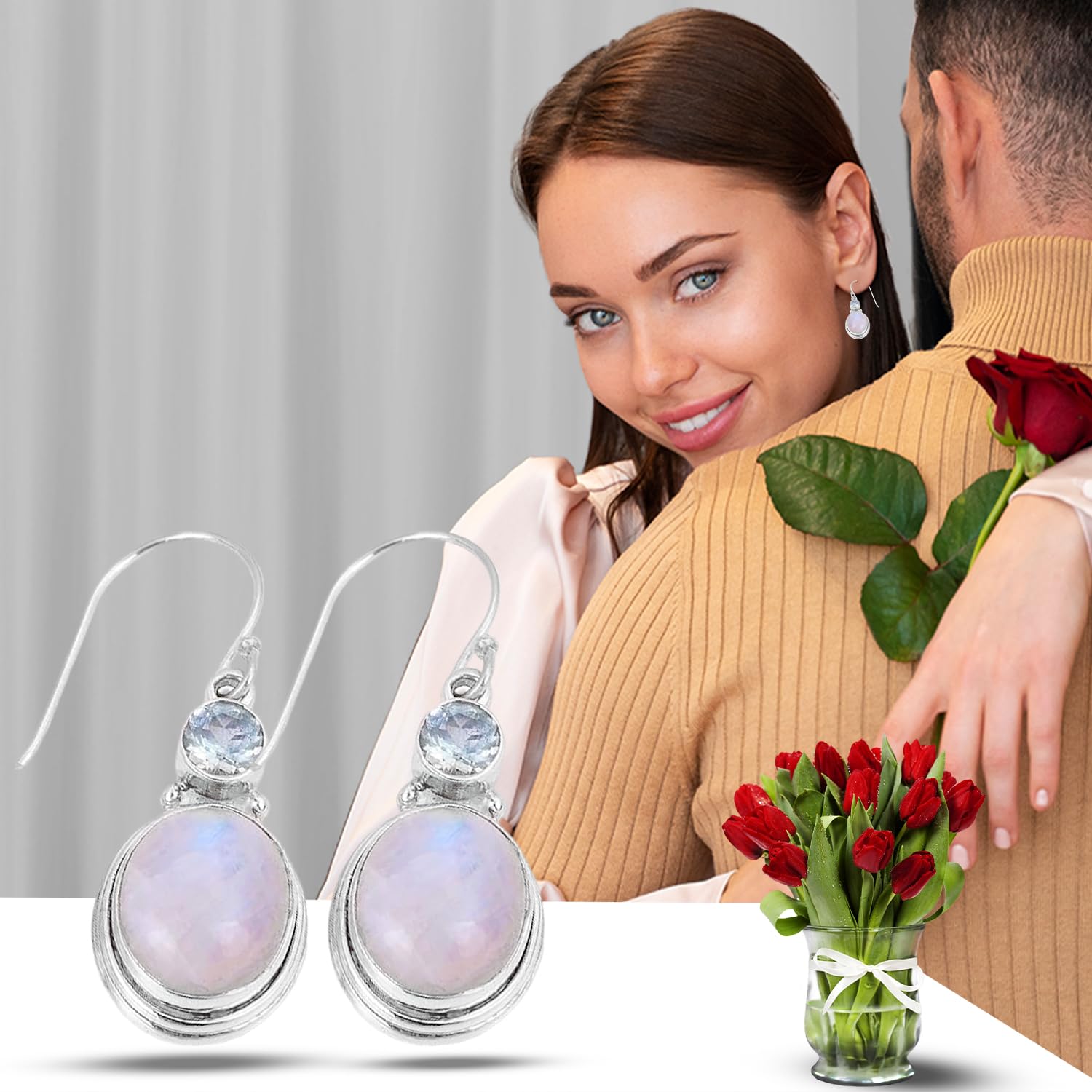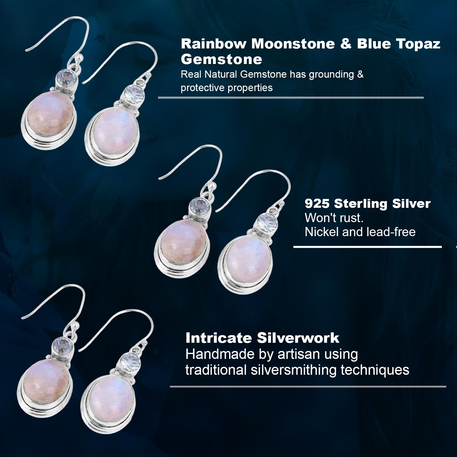 Rainbow Moonstone & Blue Topaz Earring, Designer 925 Sterling Silver Earrings mothers day gifts