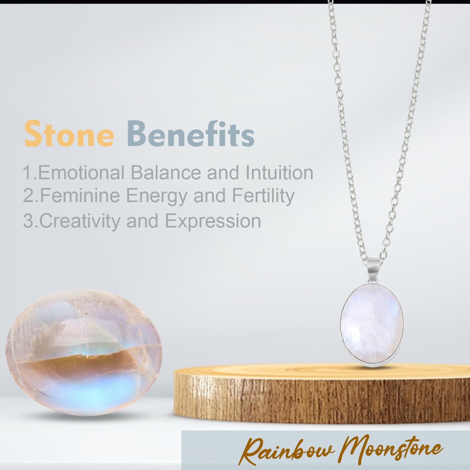 Rainbow Moonstone Cabochon Pendant