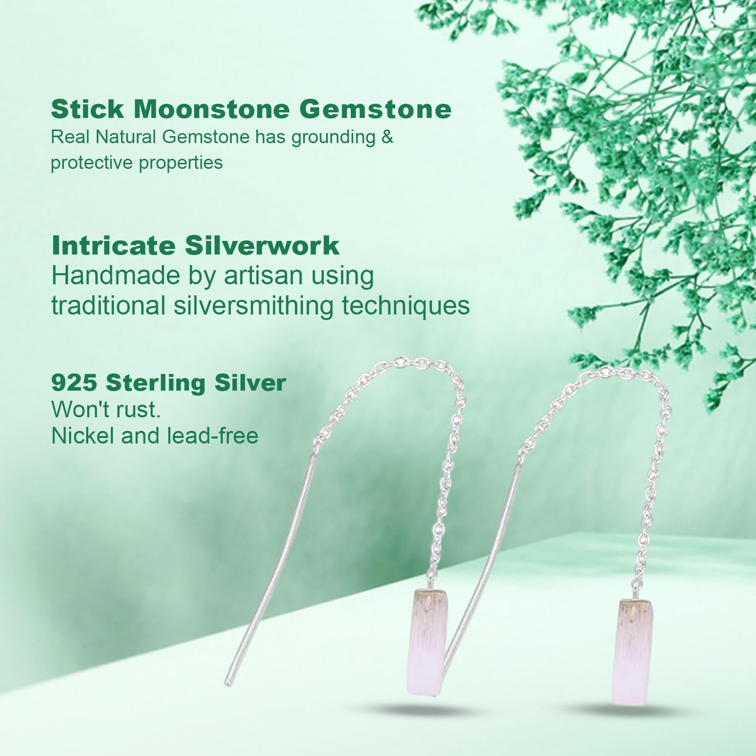 Add movement and magic to your look with these handcrafted Rainbow Moonstone Dangle Chain Earring, made in 925 Sterling Silver. Inspired by the elegance of Indian craftsmanship, these earrings beautifully sway with every step?making them perfect for both festive occasions and everyday grace.