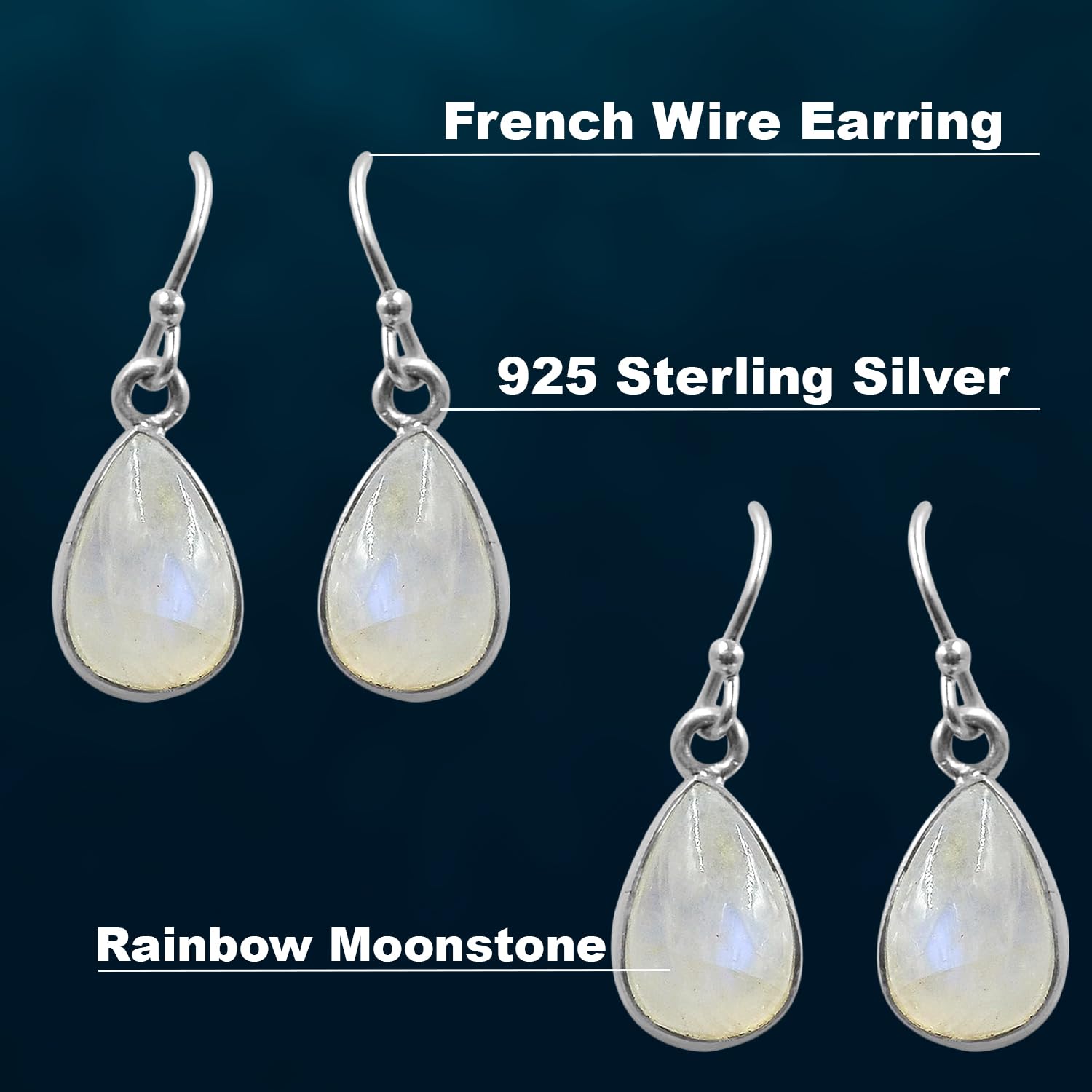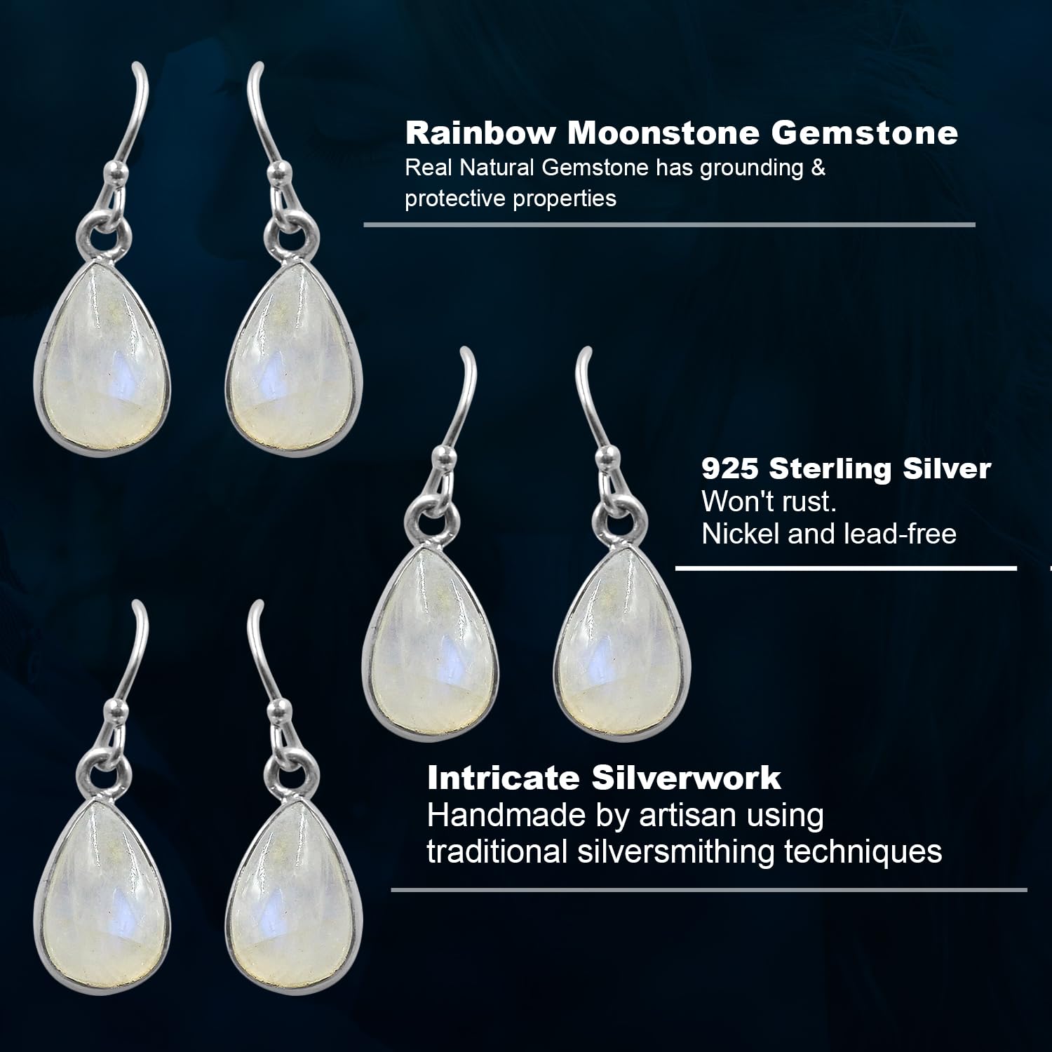 Rainbow Moonstone Dangle Earring, Healing Gemstone Earring, 925 Sterling Silver Earrings