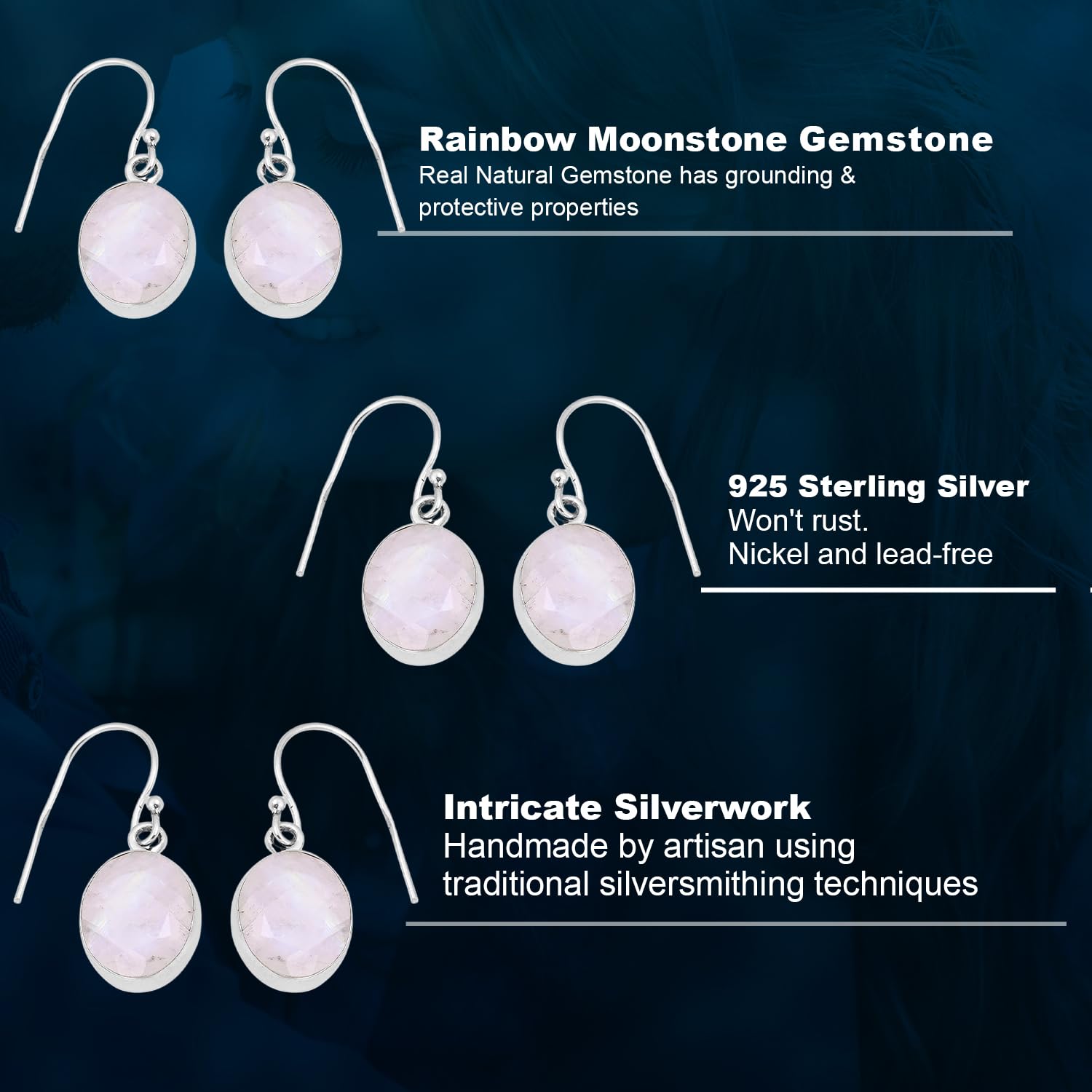 Rainbow Moonstone Earring, 925 Sterling Silver Natural Gemstone Earring, Statement Earrings