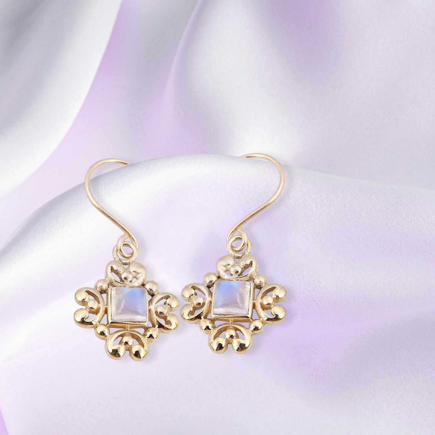 Rainbow Moonstone Earring Designer Fashion Earring Yellow Gold Brass Earring Bohemian Earring mothers day gifts