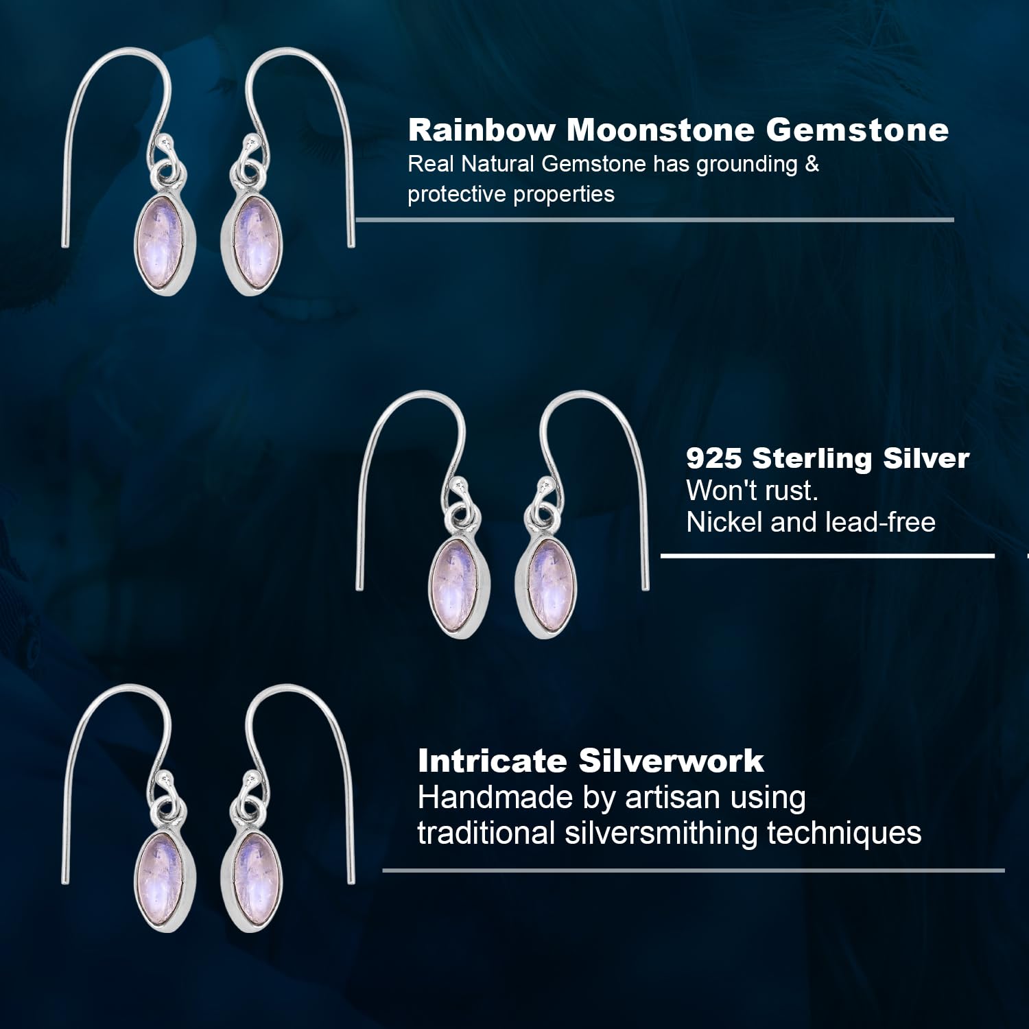 Rainbow Moonstone Earring, Handmade 925 Sterling Silver Gemstone Earrings mothers day gifts
