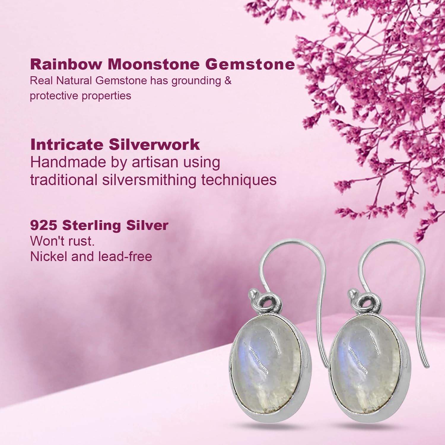Avoid direct contact with water, perfumes, and harsh chemicals. Store in a dry pouch when not in use.These graceful Rainbow Moonstone?Earring ?Dangle Earrings in 925 Sterling Silver Earring? Earring bring an elegant drop of calm to your look. Known as the stone of intuition, Rainbow Moonstone helps soothe the mind and spirit. Handcrafted in Jaipur with ethically sourced stones and artisan techniques, they’re a go-to for special moments or subtle daily sparkle.