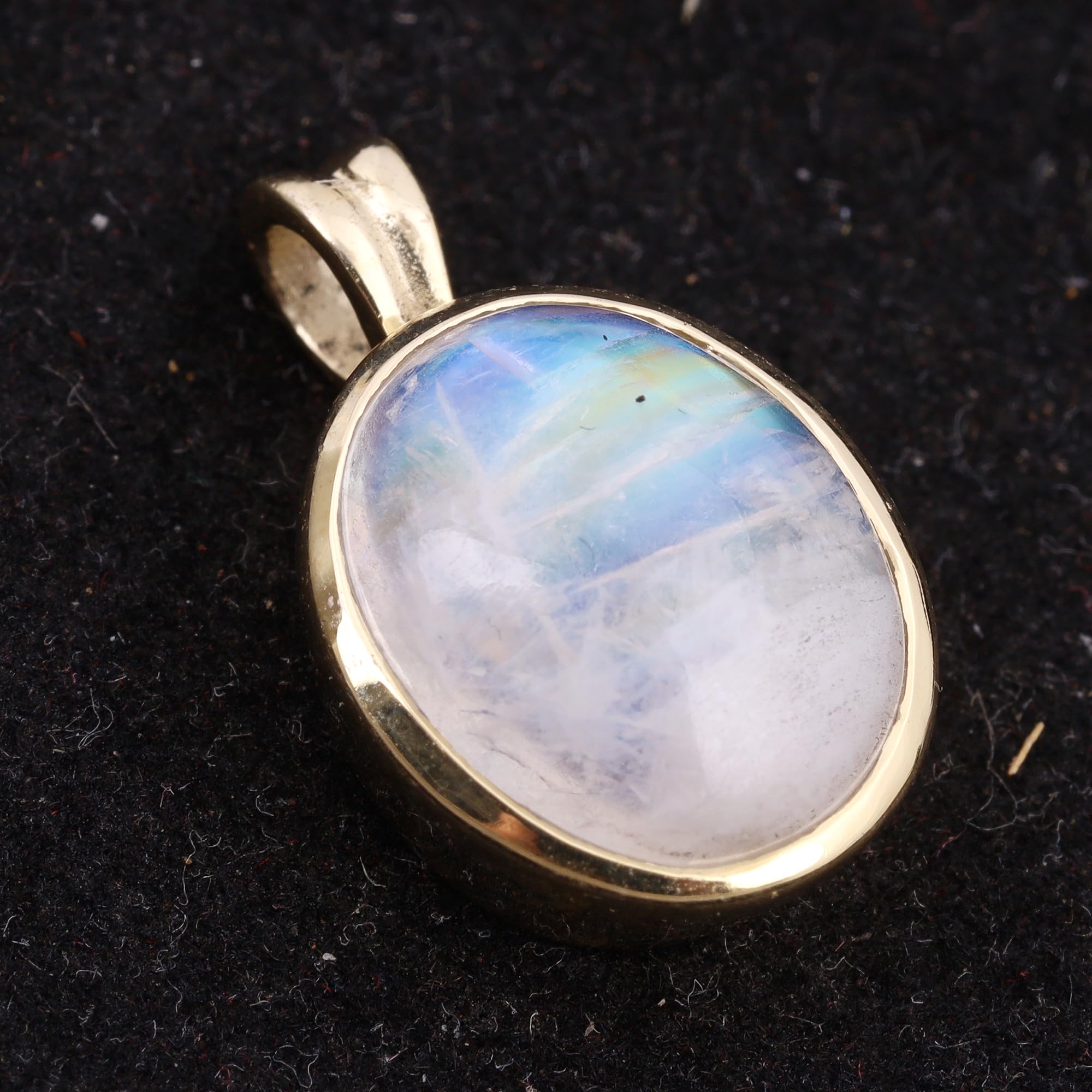 Rainbow Moonstone Pendant For Women Handmade Designer Yellow Gold Brass PendantRainbow Moonstone Pendant For Women Handmade Designer Yellow Gold Brass Pendant