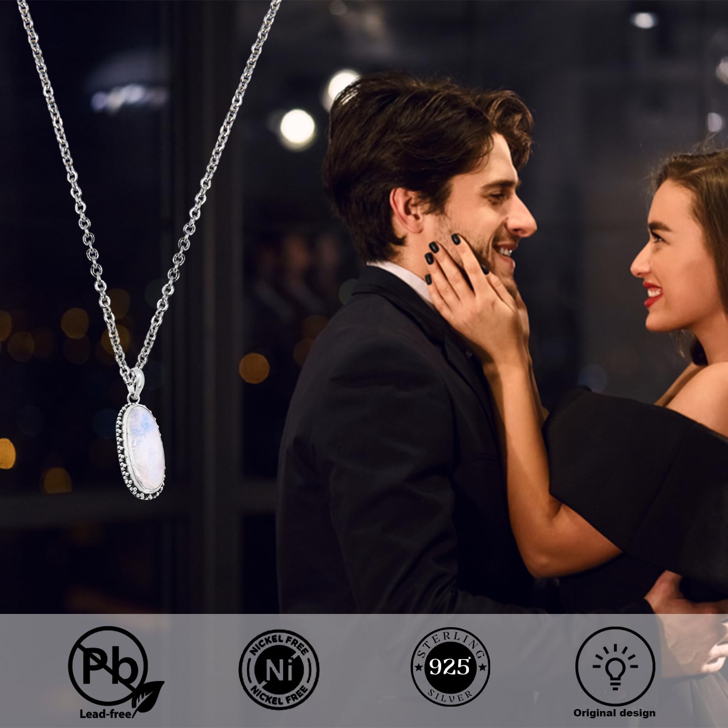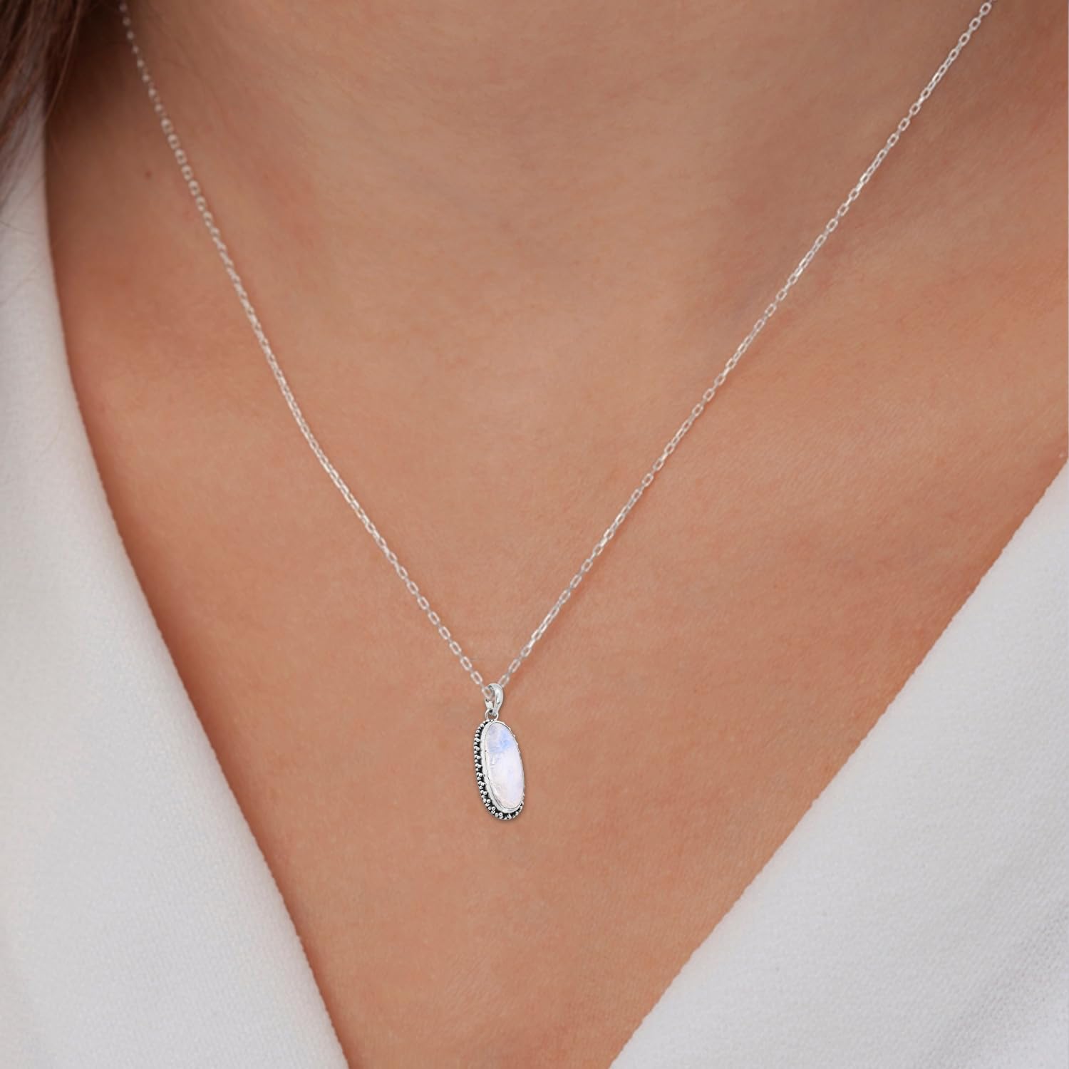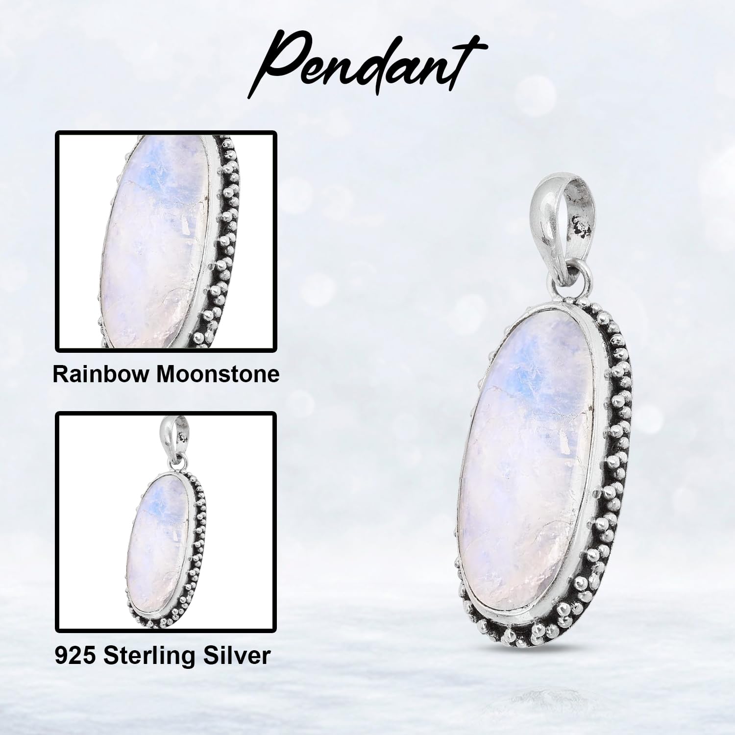 Rainbow Moonstone Pendant, Oval Shape Gemstone 925 Sterling Silver Pendant Jewellery