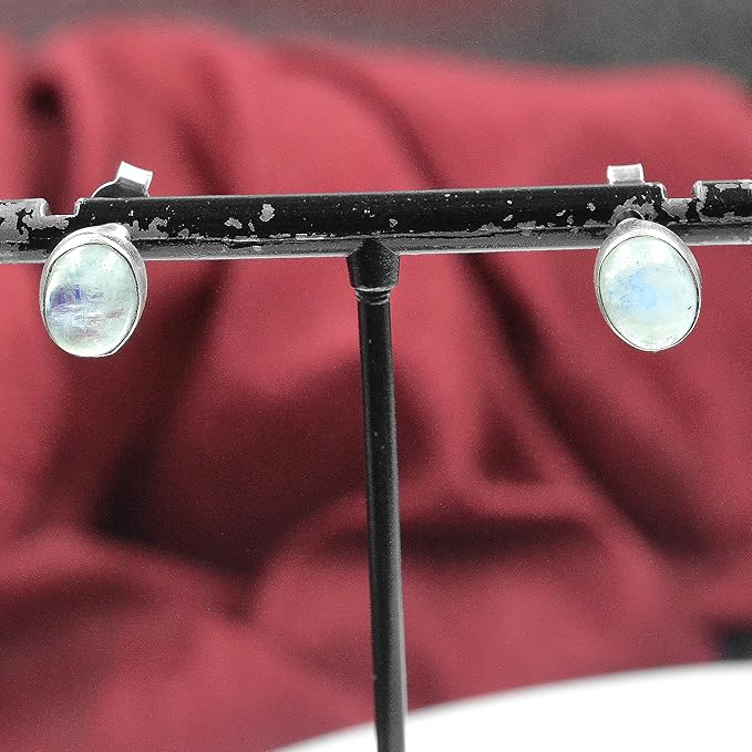 Rainbow Moonstone Stud Earring, 925 Sterling Silver Earring, Handmade Fine Silver Earring