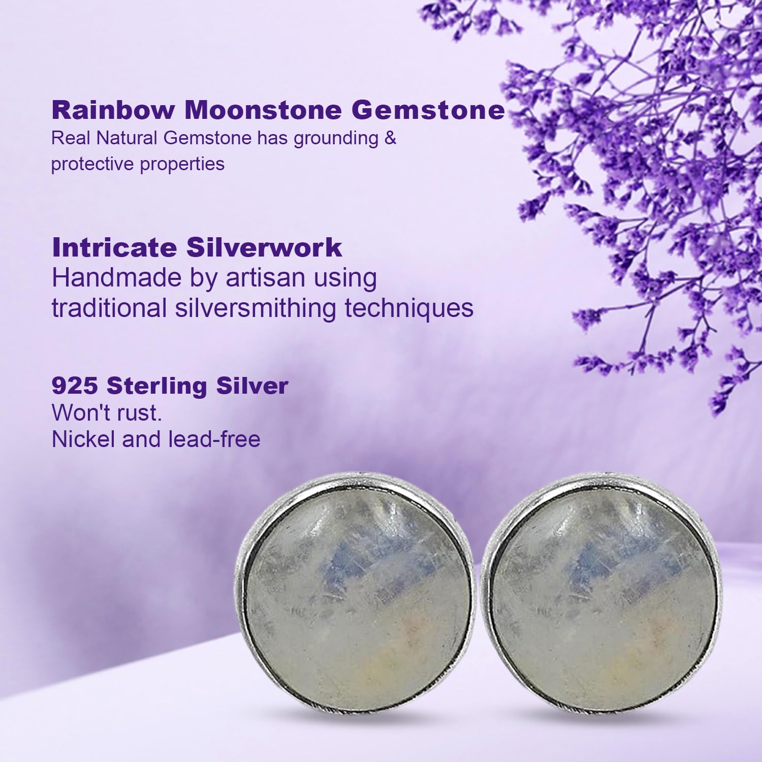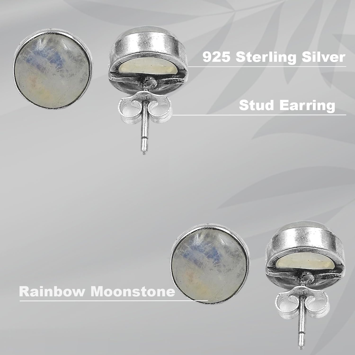 Rainbow Moonstone Stud Earring, Healing Crystal Earring, 925 Sterling Silver Earring, Handmade Earring mothers day gifts