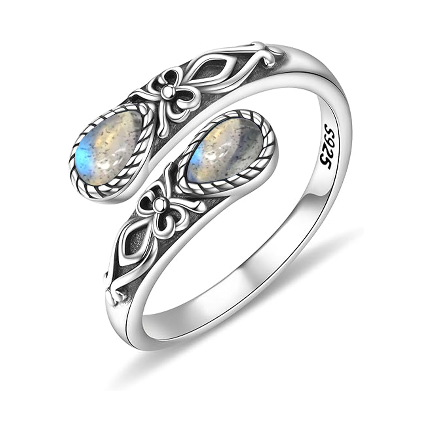 Enchant your look with the mystical beauty , gracefully set in a heart-shaped sterling silver ring. The center stone shimmers with a soft, iridescent glow that changes with every movement. Framed by a split shank adorned with 16 sparkling rainbow moonstone accents, this 2.33-gram ring is a symbol of femininity, intuition, and inner calm.