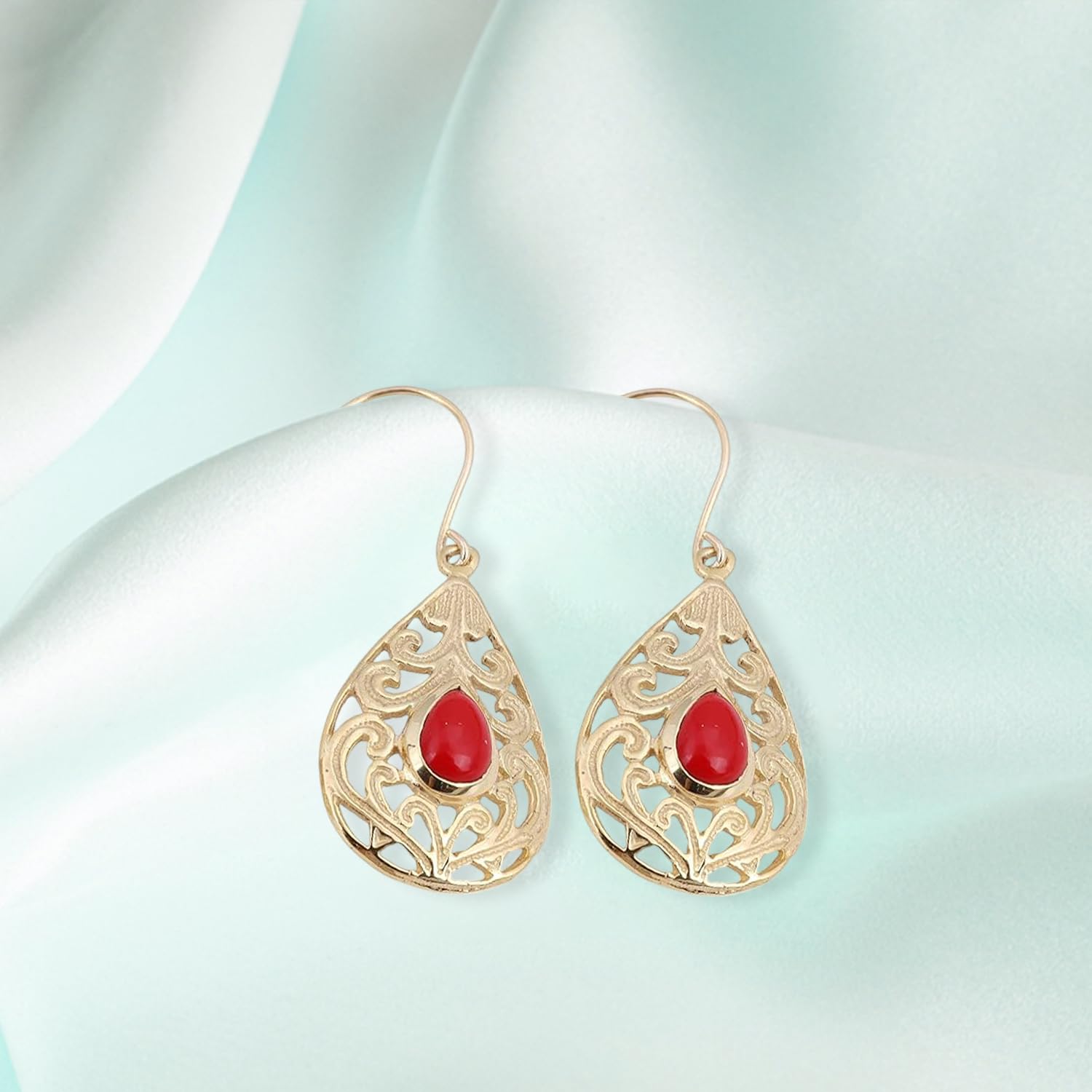 Red Coral Earring Designer Fashion Earring Yellow Gold Brass Earring Bohemian Earring mothers day gifts