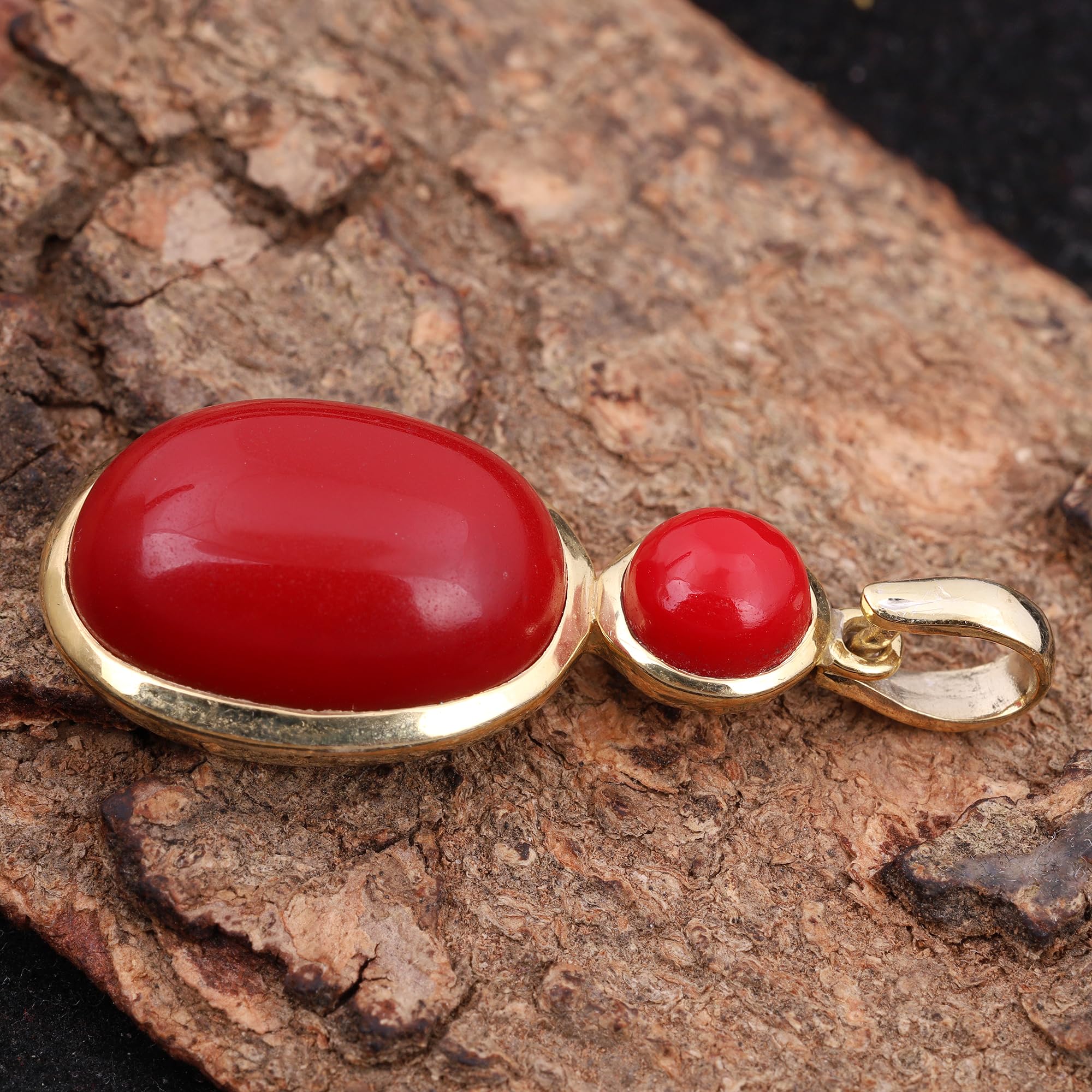 Red Coral Pendant For Women Yellow Gold Brass Pendant Fashion JewelryRed Coral Pendant For Women Yellow Gold Brass Pendant Fashion Jewelry