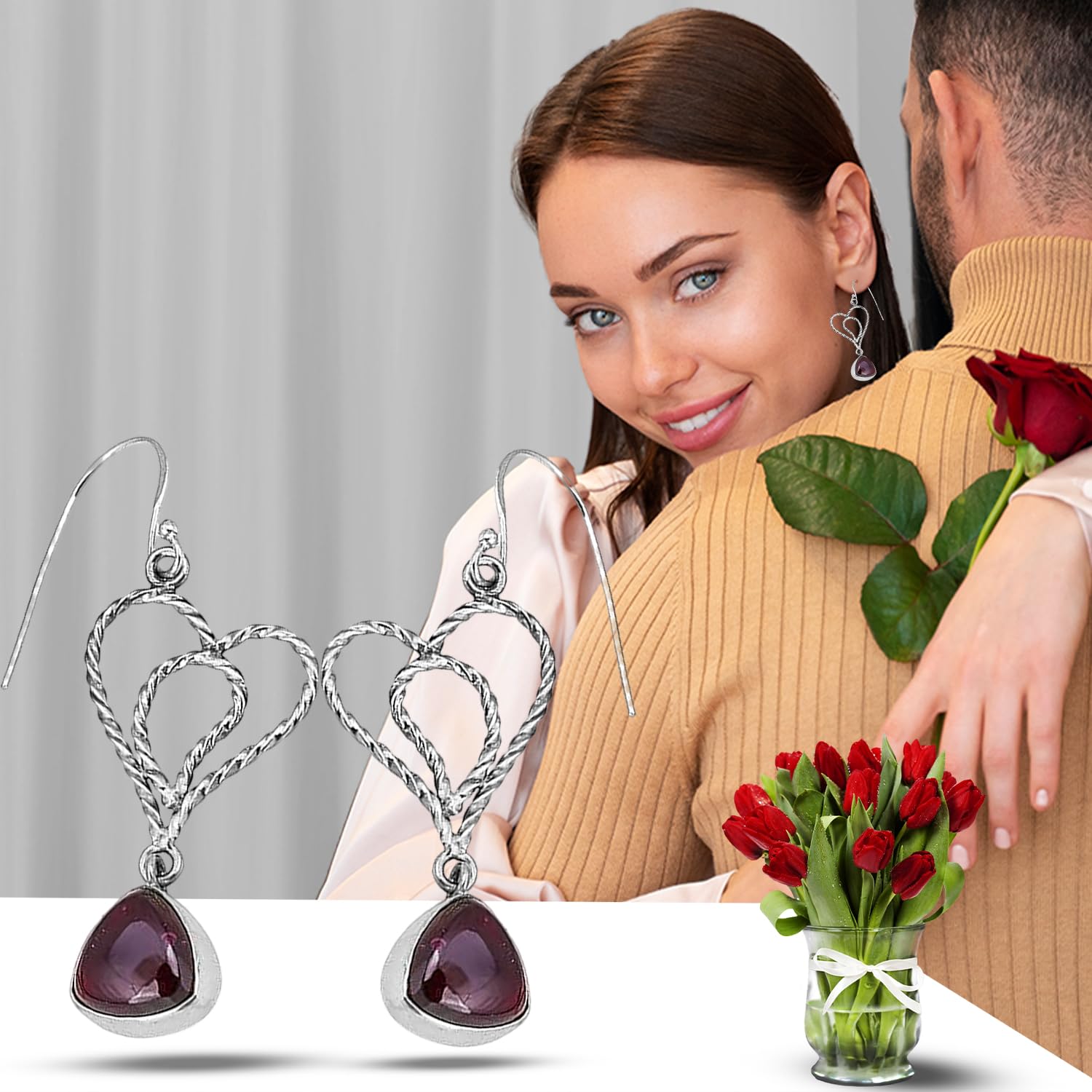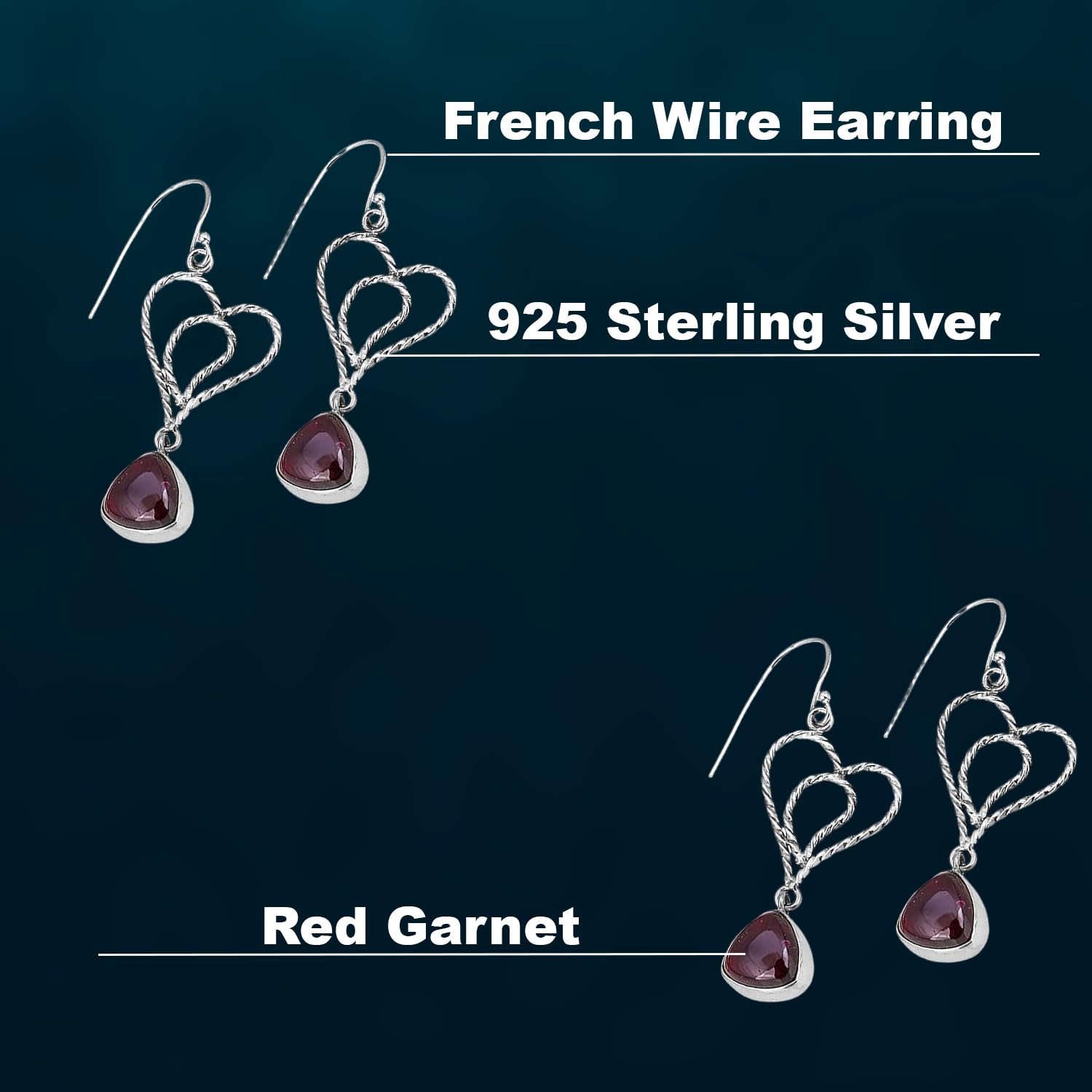 Red Garnet Dangle Earring, Heart Shape 925 Sterling Silver Earring, Bohemian Earring mothers day gifts