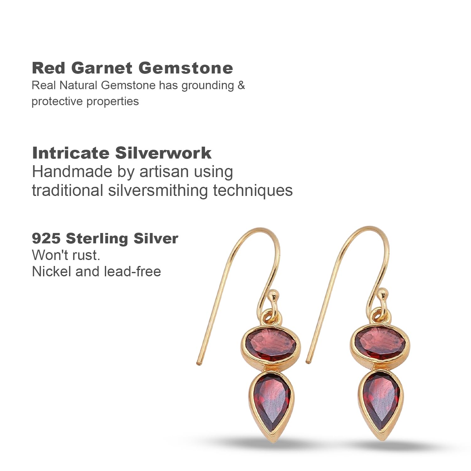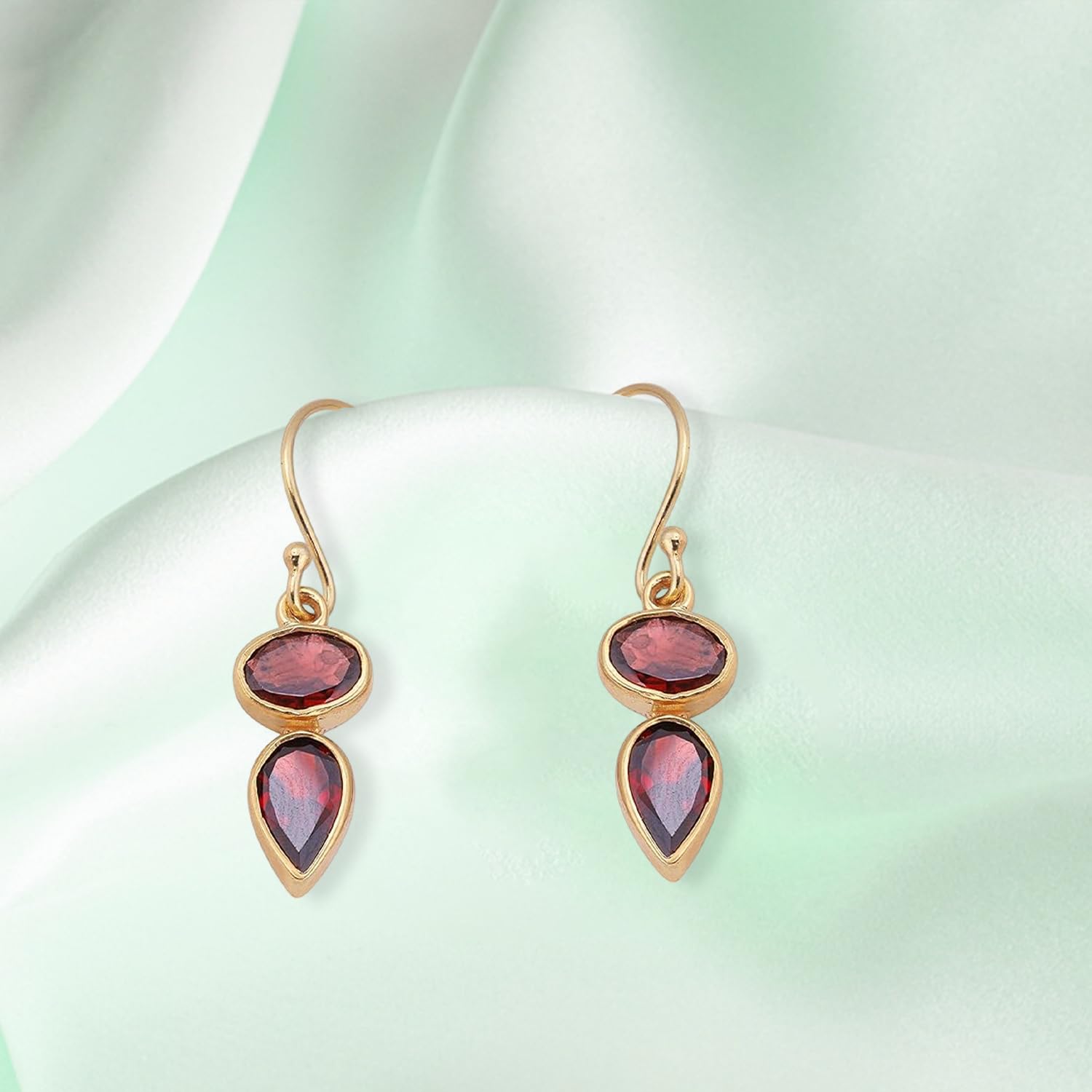 Avoid direct contact with water, perfumes, and harsh chemicals. Store in a dry pouch when not in use.These graceful Red Granet Dangle Earrings in Yellow Gold Plated bring an elegant drop of calm to your look. Known as the stone of intuition, Amethyst helps soothe the mind and spirit. Handcrafted in Jaipur with ethically sourced stones and artisan techniques, they’re a go-to for special moments or subtle daily sparkle.