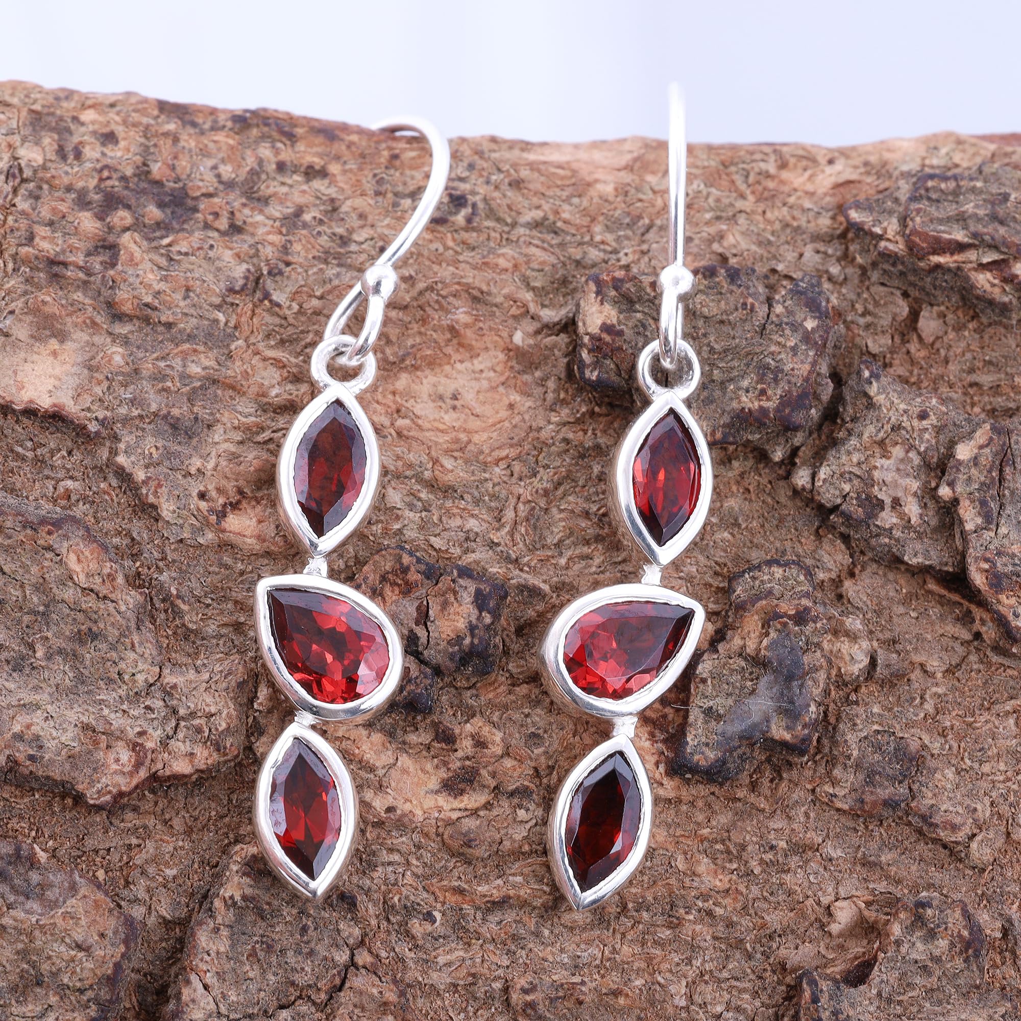 Red Garnet Earring Handmade Bezel Setting Minimalist Gemstone Earring For Women 925 Sterling Silver Earring mothers day gifts