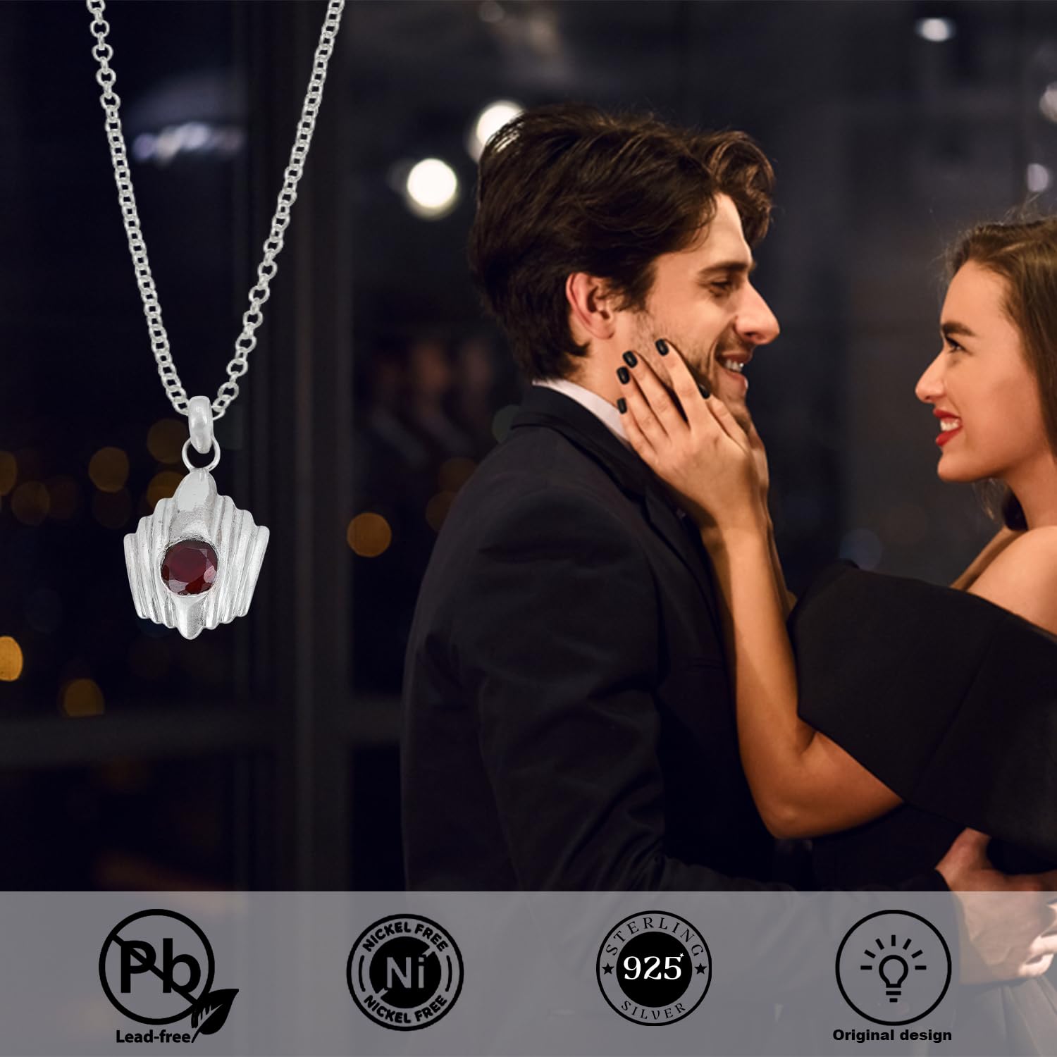 Red Garnet Pendant, Solid 925 Sterling Silver Pendant Bohemian Jewelry