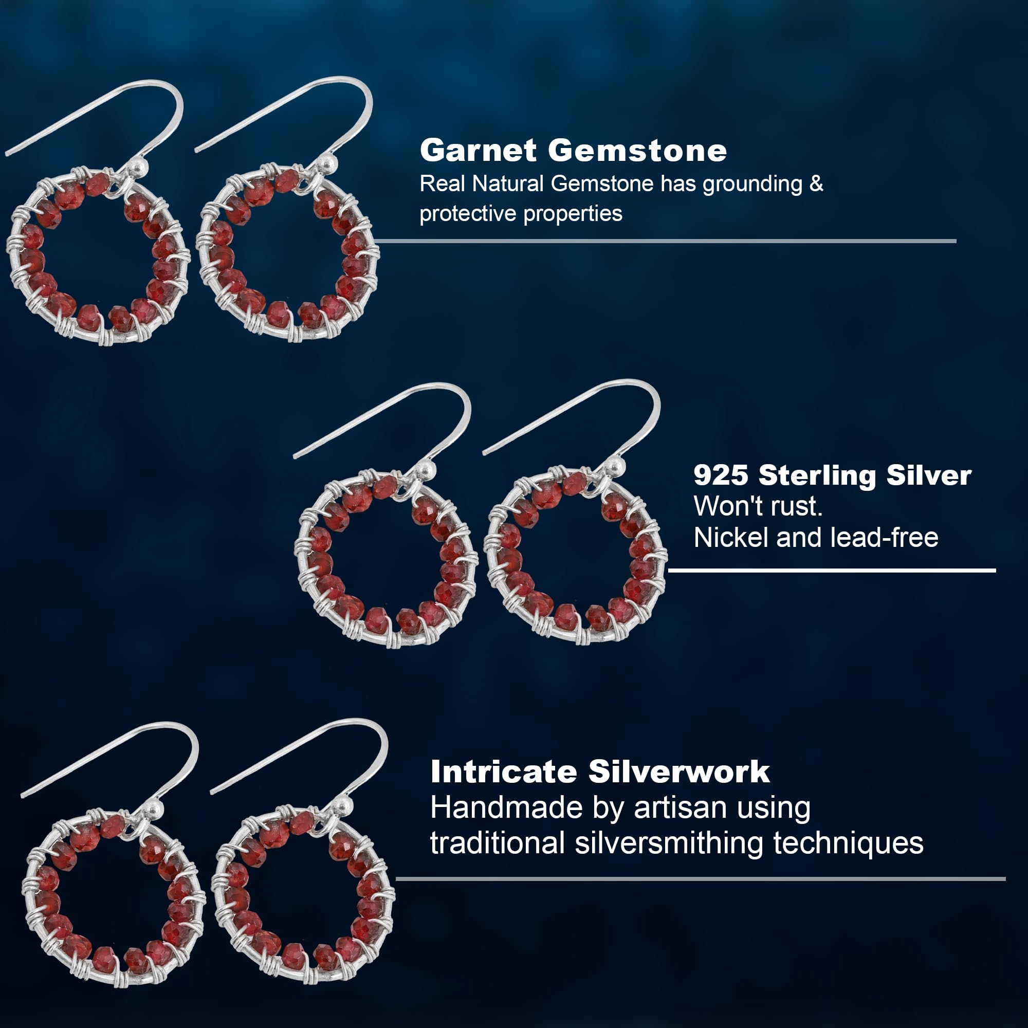 Red Garnet Yellow Gold Plated 925 Sterling Silver Earring For Women, Dangle Earring, Boho Earring