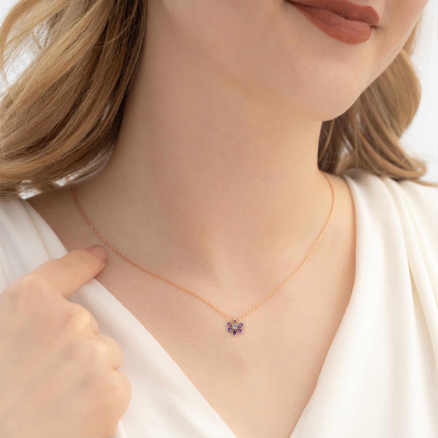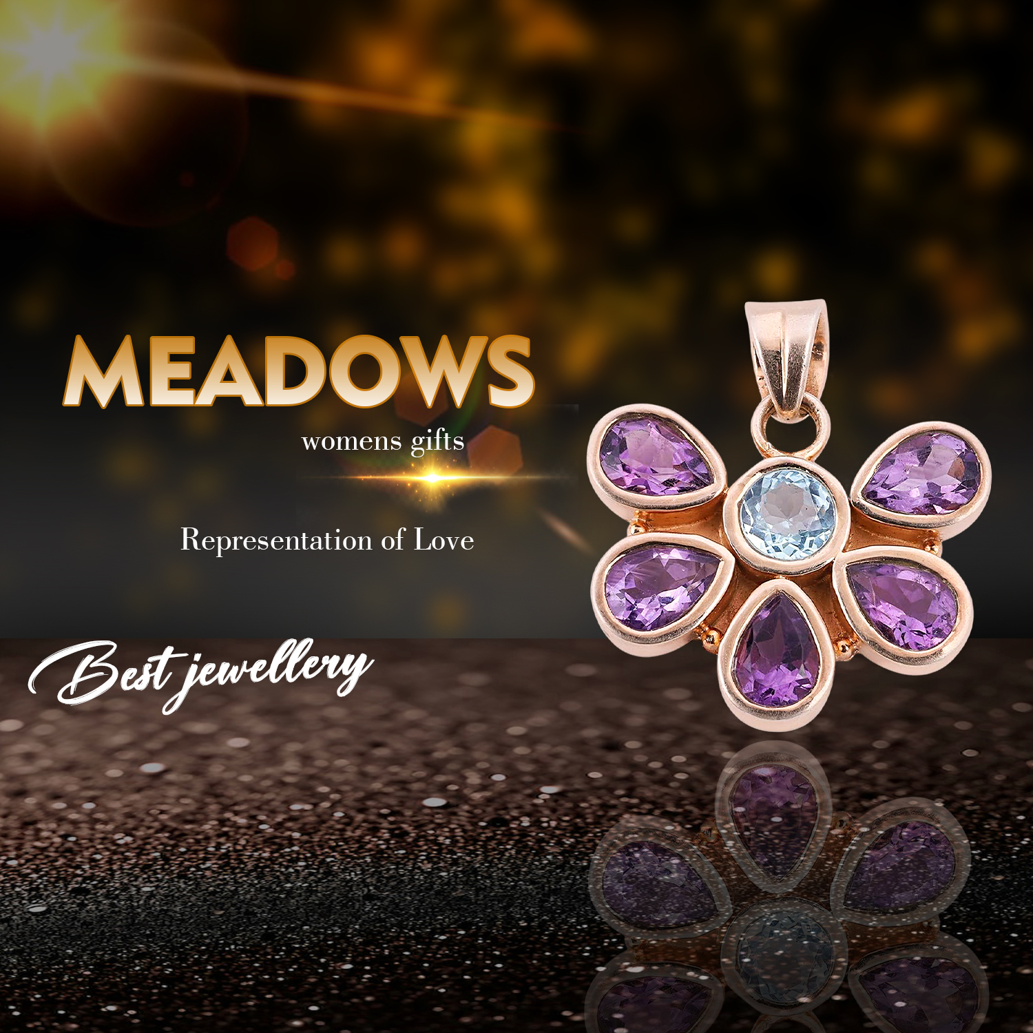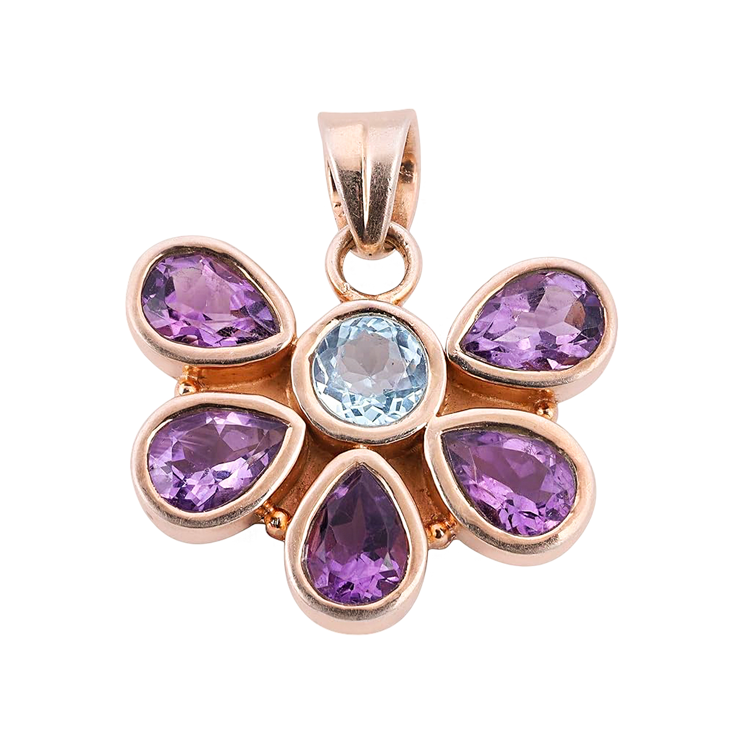 Elevate your style with the Meadows Multi Gemstone Pendant, an exquisite blend of natural amethyst and sky blue topaz gemstones. Handcrafted with care from premium 925 sterling silver and finished with luxurious rose gold plating, this pendant offers a modern and elegant look that complements any outfit.